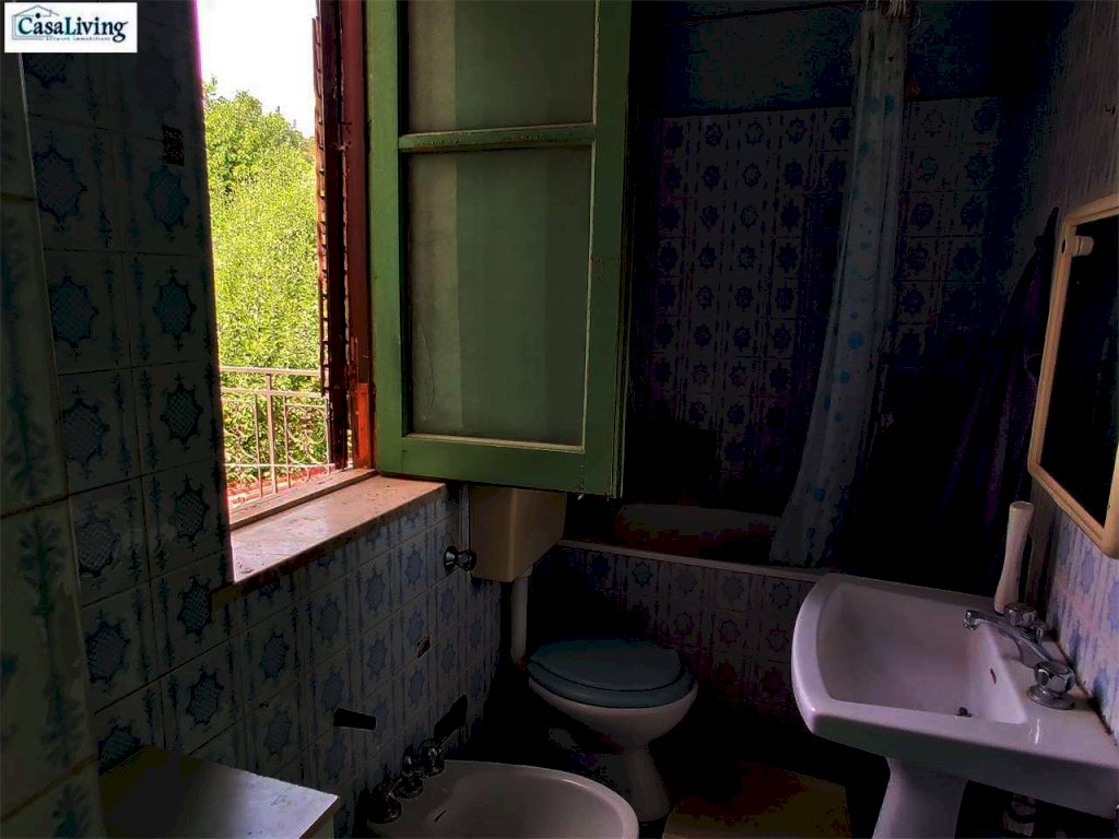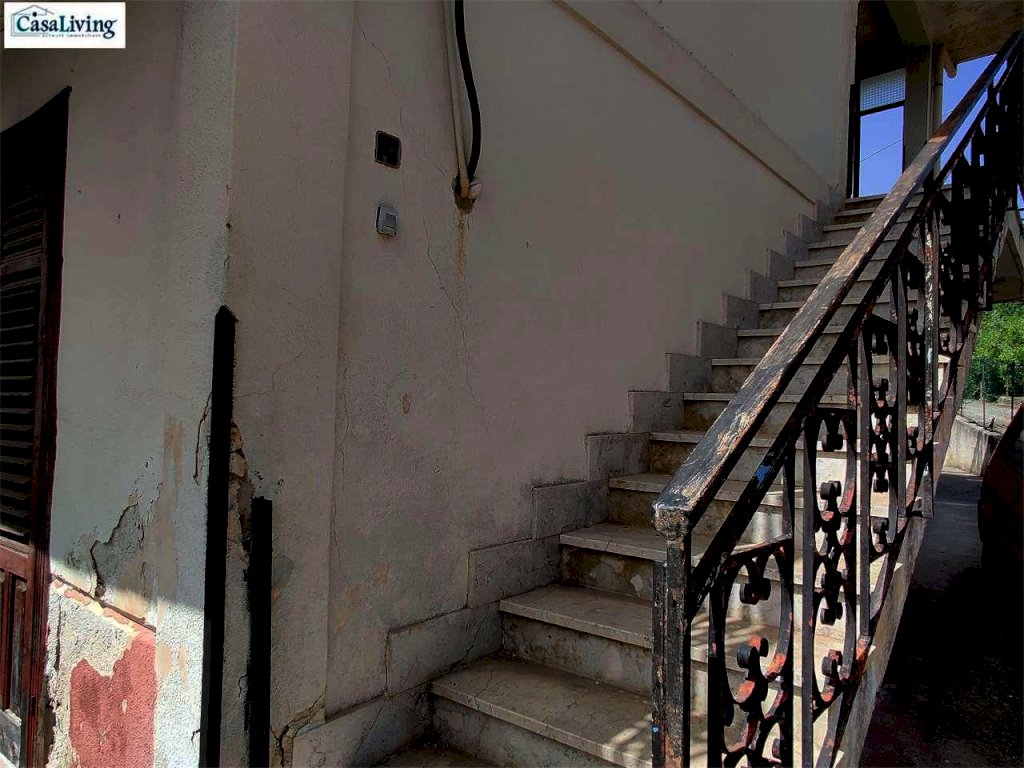 Una scala esterna in muratura conduce al primo piano, che si apre su un disimpegno e include una cucina, tre camere da letto, una cameretta e un servizio.