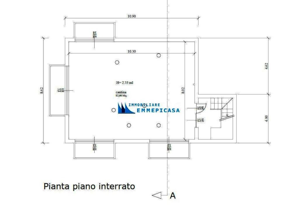 -piano interrato di 94 mq di superfice residenziale per realizzazione di appartamento indipendente con accesso privato e ampia illuminazione naturale composto da 3 camere, cucina/pranzo/soggiorno e 2 bagni ;