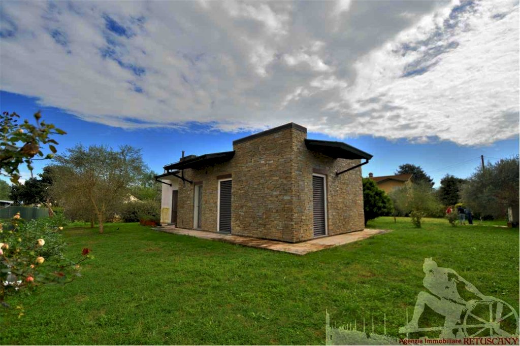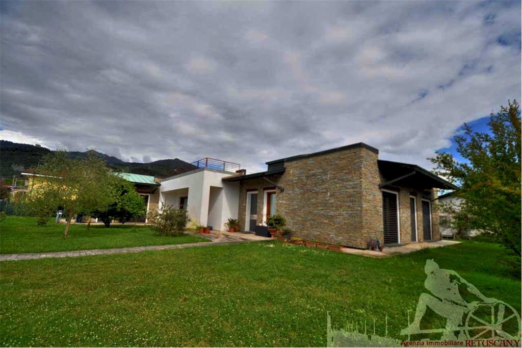 Villa singola disposta su un unico piano oltre all'interrato e al solarium con ampio giardino circostante e posti auto interni alla proprietà. Situata nella campagna tra Montignoso e Cinquale. Abitazione di circa 230 mq, interrato di circa 230 mq, terrazza solarium di circa 100 mq, lotto di circa 1.700 mq, distanza dal mare circa 2.500 metri. Composta da: ingresso, soggiorno pranzo molto ampio e luminoso, cucina abitabile, bagno di servizio, camera padronale con vano armadi e bagno privato, due camere matrimoniali, bagno, disimpegni. Interrato a pianta libera con dotazione di impianti tecnologici fruibile e ritagliabile secondo le esigenze. La villa è di recente costruzione arricchita da dettagli di pregio. Dalla terrazza solarium si gode una splendida vista a 360 gradi. L'immobile dispone di riscaldamento a pavimento, aria condizionata inserita nel soffitto e sistema di ricircolo aria.