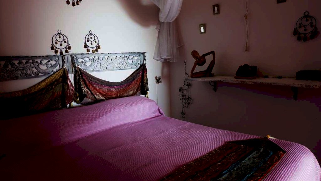 Anche da qui è possibile accedere al terrazzo senza dover disturbare gli ospiti della camera precedente. Inoltre uscendo sul terrazzo e subito a sinistra troviamo un cucinotto esterno ben attrezzato dove preparare ottime colazioni da gustare all'ombra dei pini. Questa zona è forse la più riparata e adatta al relax. Amache e sdraio arredano tutti gli ambienti esterni, ma questa parte vi confesso, è la mia preferita.