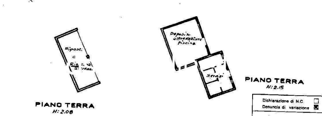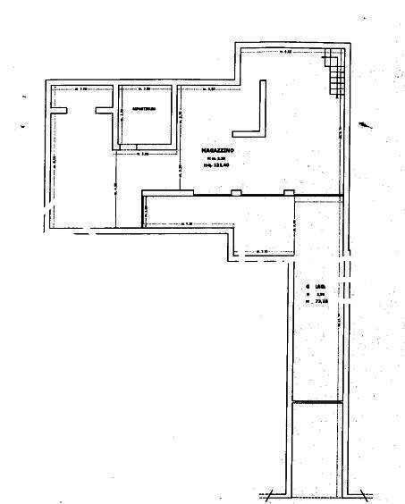 Il piano primo sotto il livello campagna è composto da un garage della superficie di mq. 73,26 ca., cui si accede attraverso un manufatto sotterraneo, il quale si unisce e prosegue con un magazzino e ripostiglio oltre alle scale interne di accesso ai piani superiori superficie complessiva di mq. 121,40;