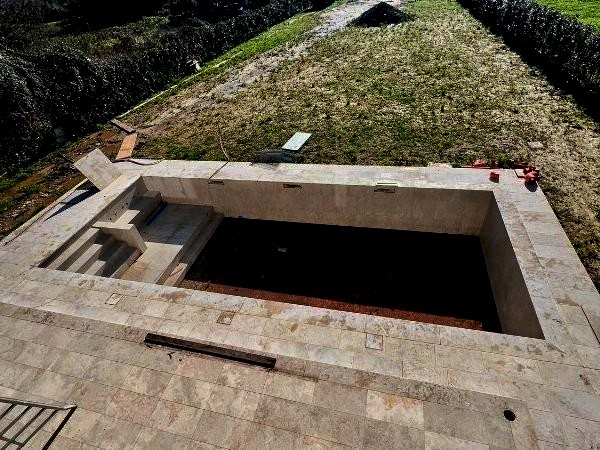 La piscina rimane nella parte del retro della villa con la vista di circa 1000mq destinati a giardino, dove sarà possibile personalizzare eventuali parcheggi auto e deposi attrezzi.
