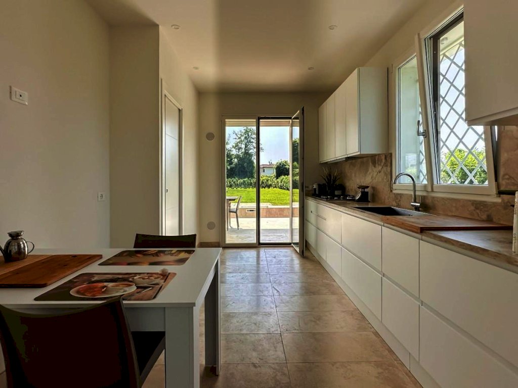 Tramite strada privata a fondo chiuso, in zona residenziale nelle vicinanze del centro e a tutti i servizi, disponibile alla vendita Villa unifamiliare di nuova costruzione, moderna con Piscina e grandi spazi aperti e predisposti al soggiorno.