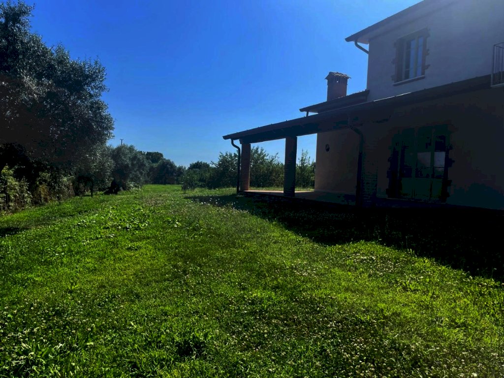 Splendida Villa di Recente Costruzione posta a Strettoia, Comune di Pietrasanta ed in Classe Energetica A2. Un Gioiello nel Cuore della Versilia. Immersa in un Giardino con Ulivi di circa 3000mq. Piano Terra Ampio Salone con Camino e Angolo Cottura con Ingresso Principale e Accesso a Ampia Veranda Pranzabile. Sempre al Piano Terra Troviamo un'Ampia Camera Matrimoniale ed un Bagno don Doccia e Finestra. Salendo al Piano Primo Troviamo una Camera da Letto Gigante con Balcone, la quale può essere Suddivisa in 2 Camere Matrimoniali (già Predisposto Impianto Elettrico e di Condizionamento per la Suddivisione), Ampio Studio Mansardato e Bagno con Vasca Idromassaggio e Finestra. Al Piano Seminterrato, Accessibile da Scala Interna e Scivolo per Auto, Troviamo un Openspace Molto Asciutto di 150mq con Predisposizione per Lavanderia, Garage Auto e Taverna. Esternamente Vano Tecnico con Accumulatore dei Pannelli Fotovoltaici. L'immobile è ben Rifinito con Riscaldamento a Pavimento, Pannelli Fotovoltaici, Infissi Pregiati in Legno con Vetro Triplo, Tetto Ventilato, Condizionatori in Tutti i Vani. Predisposizione per Metano anche se Superfluo. Pozzo per Irrigazione Terreno Profondo 35metri. Predisposizione Cancello Elettrico. Possibilità di Realizzare Piscina data l'Ampia Metratura del Giardino/Terreno.
