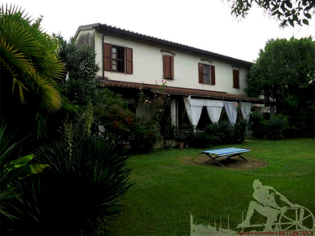 Casale indipendente con ampio giardino esclusivo nella campagna alle spalle di Forte dei Marmi. Abitazione di circa 200 mq, lotto di circa 1.500 mq, distanza dal mare poco più di 2.000 metri. Al piano terra: ingresso, soggiorno, pranzo, cucina, bagno di servizio. Al piano primo: tre camere matrimoniali/doppie, di cui una con bagno interno e una con bagno interno e stanza armadi.