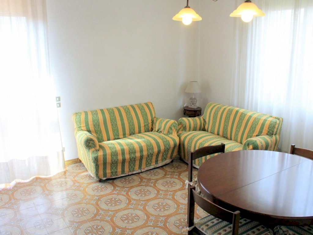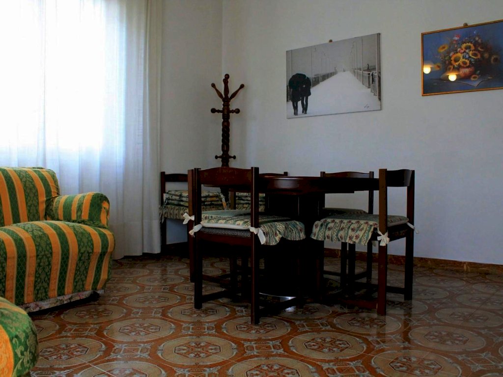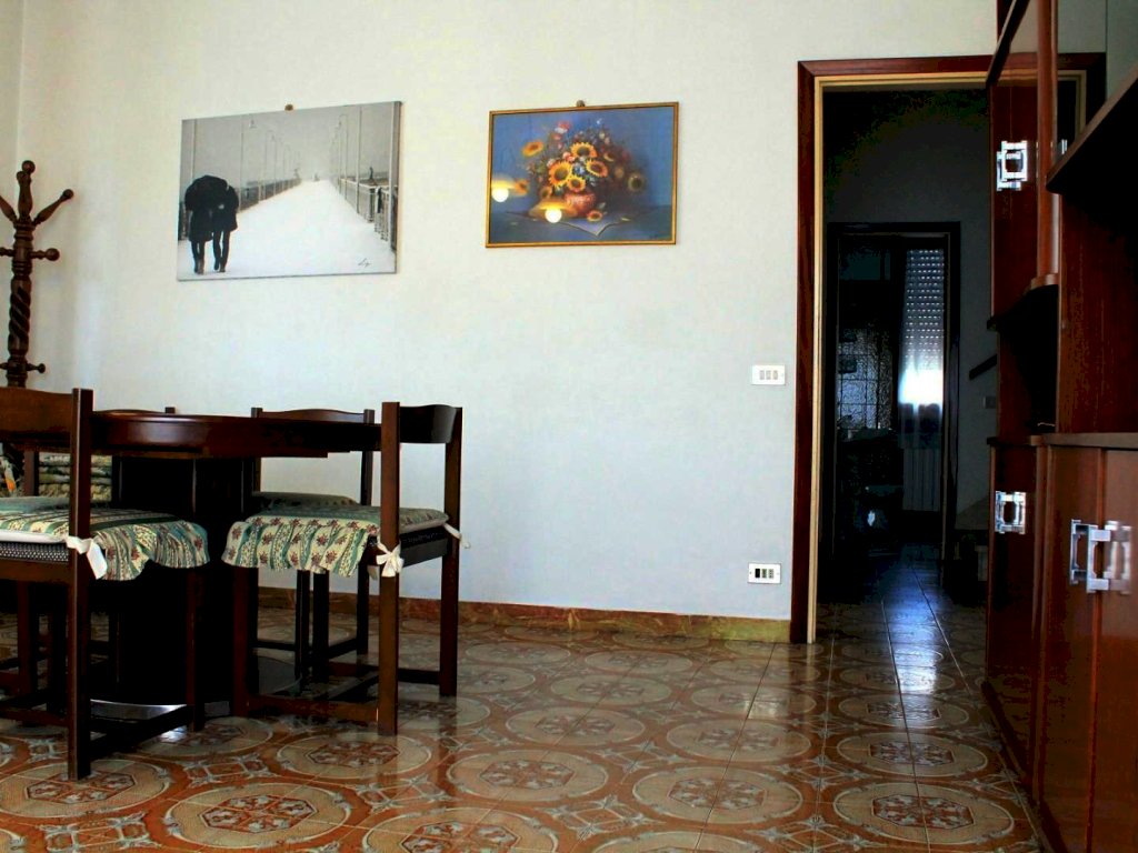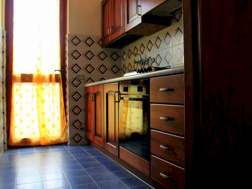 L'ingresso alla prima abitazione avviene nel cucinotto, adiacente a questo ambiente troviamo il soggiorno con zona pranzo e angolo TV. Attraverso una porta finestra è possibile uscire sulla terrazza dalla casa. Dal disimpegno si accede alla prima camera matrimoniale posta a piano terra e al primo bagno con vasca.