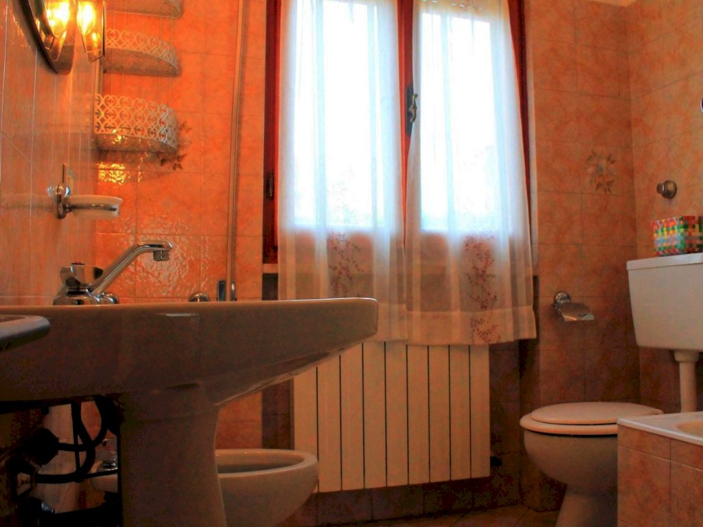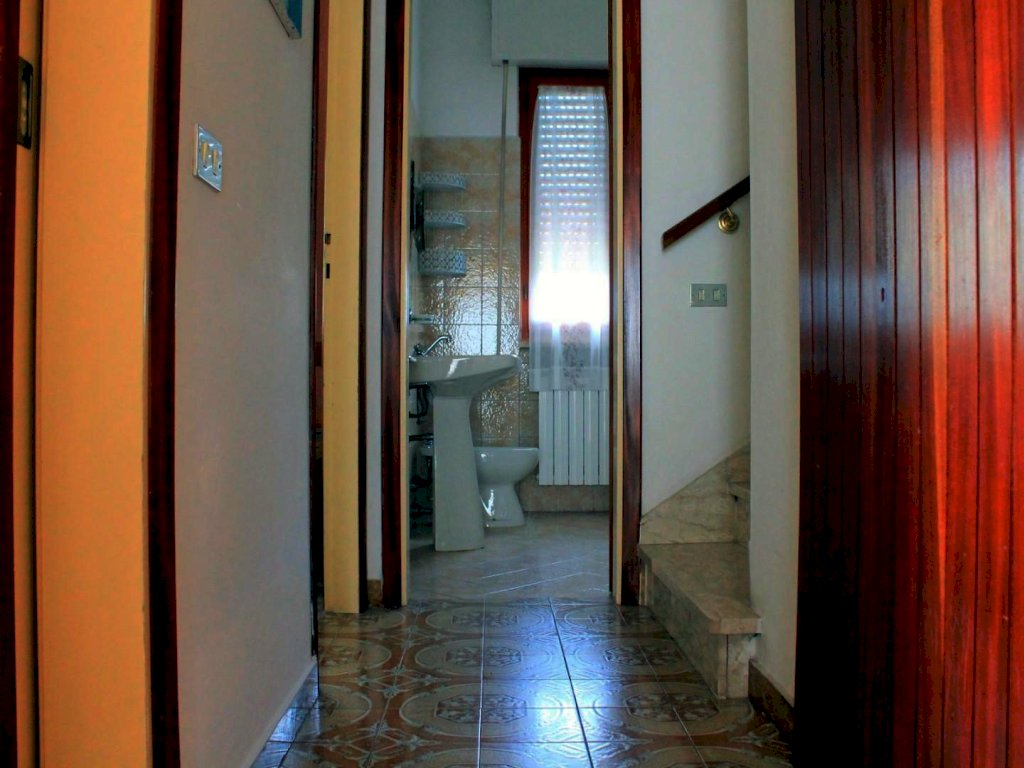 Da ingresso al piano terra rialzato si accede alla seconda abitazione, indipendente, la quale si compone a questo livello di zona giorno con divani e TV, cucina abitabile con accesso esterno e bagno di servizio. Salendo le scale si giunge al piano primo dove trova posto una prima camera da letto singola. Al piano superiore completano la zona notte due camere matrimoniali servite da un bagno con vasca.