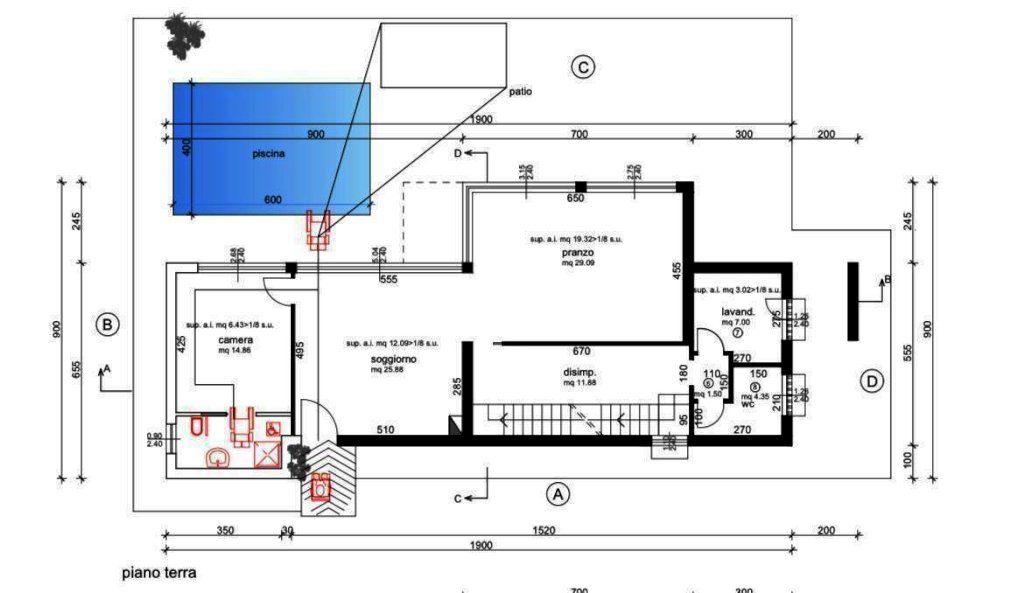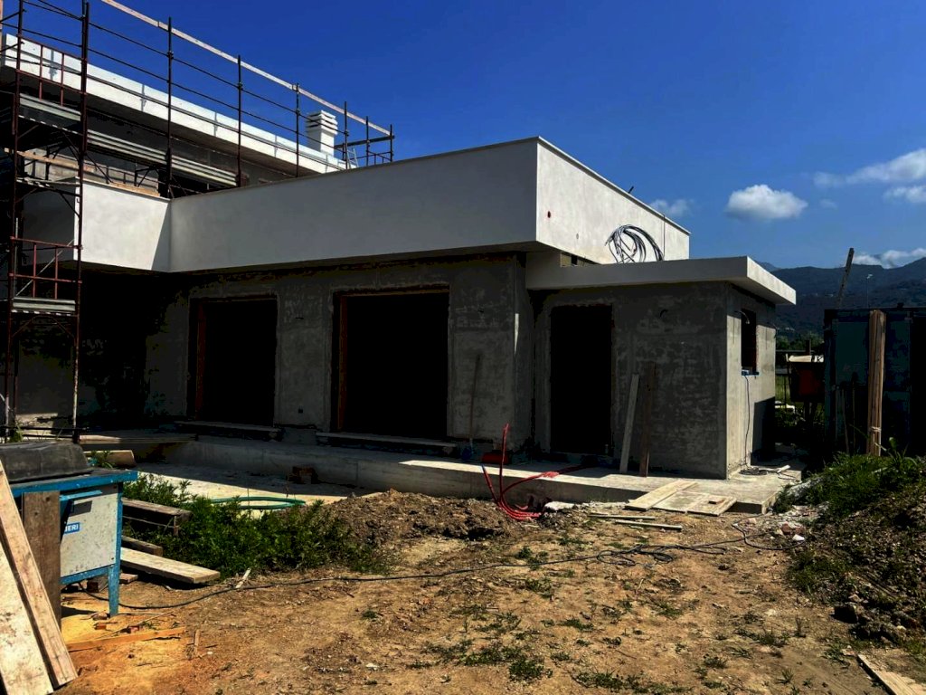 Vaiana di Pietrasanta, Vendesi Villa di 190mq su 2 livelli oltre seminterrato. L'immobile è in Fase di Costruzione e Verrà Consegnato a Dicembre 2025 Completamente Finito ed in Classe A2. Ingresso su Salone, Cucina Abitabile, Camera Matrimoniale con Bagno, Bagno di Servizio e Lavanderia al Piano Terra. Piano Primo con 2 Camere Matrimoniali, entrambe con Bagno in Camera e una con Cabina Armadi, Terrazzo Semi Perimetrale e Lastrico Solare di 40mq. Al Piano Seminterrato Cantina e Vano Tecnico. Completano l'Immobile 5000mq di Giardino con Piscina.