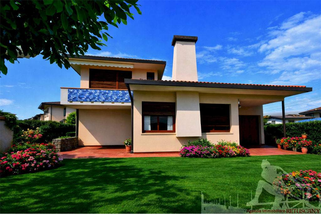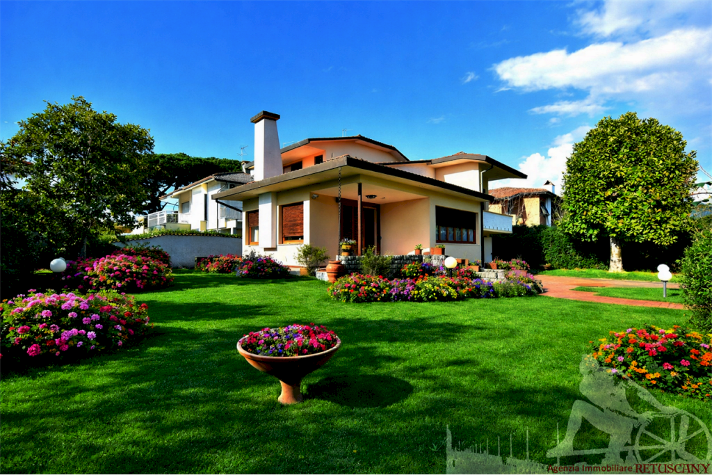Villa singola disposta su vari livelli con garage, bel giardino circostante, posti auto all'interno della proprietà, con possibilità di realizzare anche una piscina. Abitazione di circa 140 mq oltre a circa 50 mq di servizio e circa 40 mq di terrazza, lotto di circa 600 mq, distanza dal mare circa 1.000 metri. Al piano terra rialzato: ingresso da terrazza per il pranzo e il soggiorno all'aperto, ampio soggiorno con caminetto, pranzo, cucina abitabile con dispensa. Al piano primo: tre camere matrimoniali tutte con balcone, due bagni, disimpegno. Al piano terra: autorimessa, disimpegno, vano fruibile come camera di servizio, bagno, locale caldaia. Superficie commerciale di circa 200 mq.