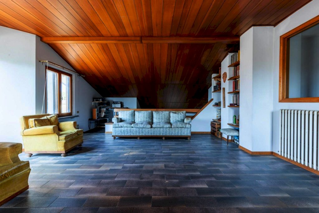 Pochi gradini sopra la mansarda si presenta come un grande open space di oltre 40 mq. con affaccio sulla salone sottostante, area ideale per il relax e la zona ludica.