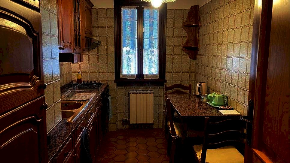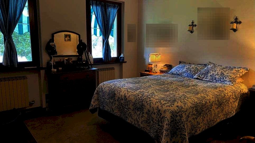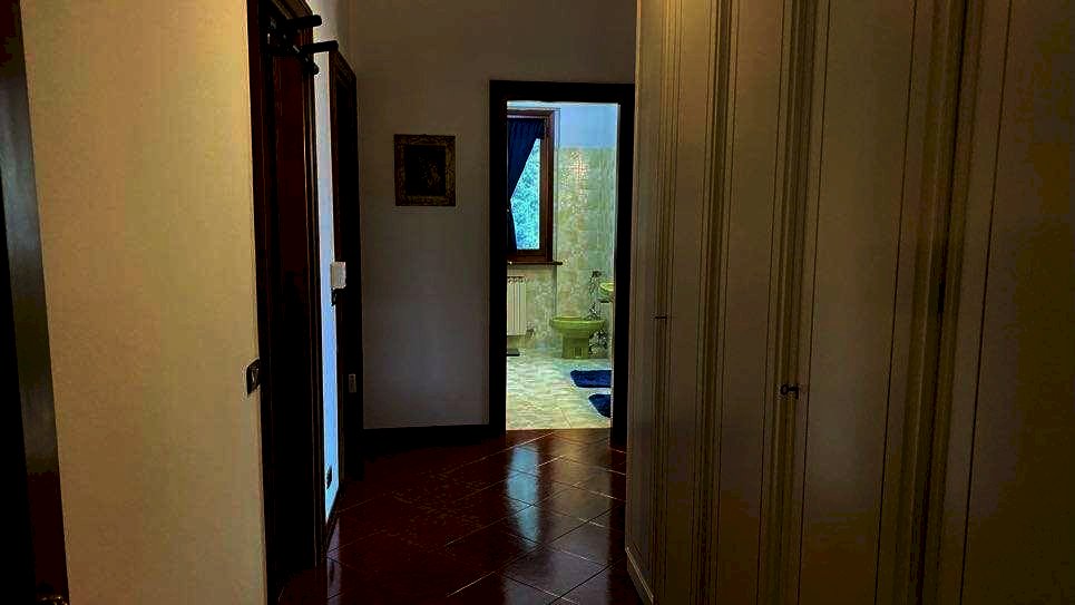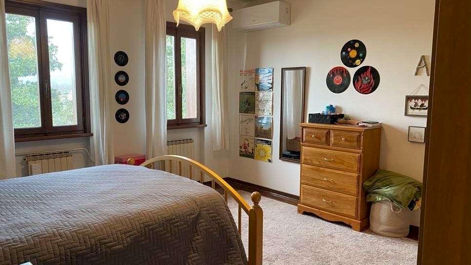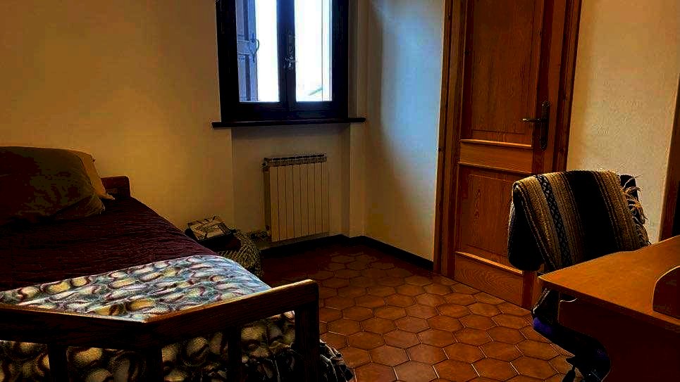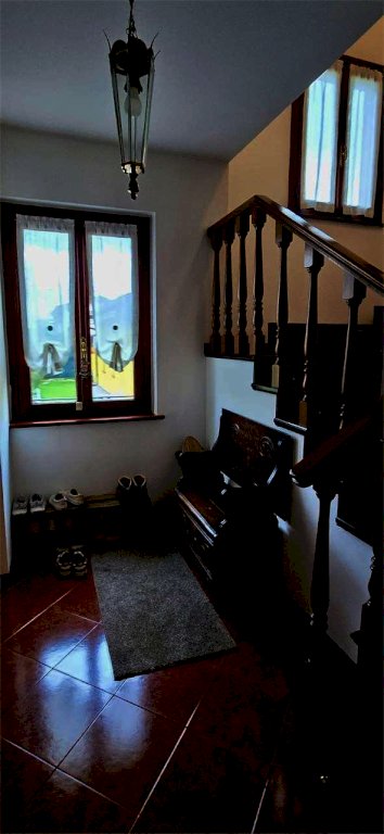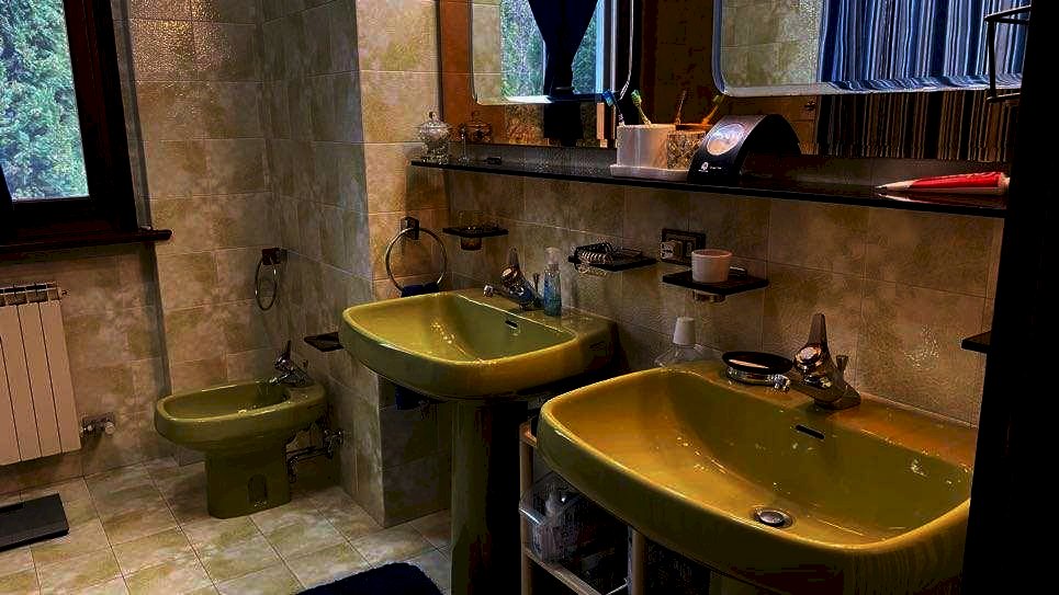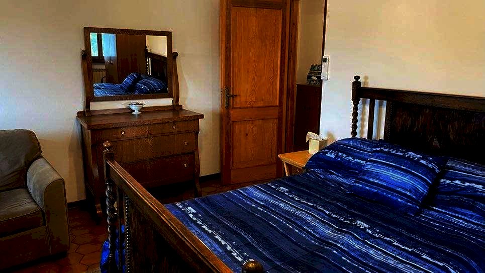 Il primo piano, accessibile anche tramite ingresso indipendente e dotato di impianto di riscaldamento autonomo, offre ulteriori ambienti abitabili: due grandi camere da letto (una delle quali con caminetto), una cameretta, un bagno, un cucinotto e una comoda veranda affacciata sul verde.