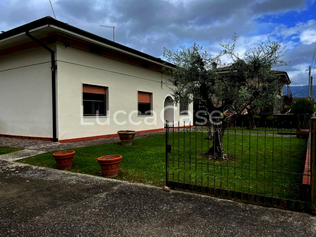 N050M Porcari (LU) - Vicina al centro presentiamo villa singola tutta su un piano circondata da ampio giardino. La villa è stata costruita alla fine degli anni '70 e si presenta in buono stato di manutenzione, subito abitabile. Le dimensioni sono generose circa 130mq.. L'ingresso ci introduce nel luminoso soggiorno, la cucina è abitabile con caminetto, la zona notte presenta 3 camere matrimoniali e uno studio. Il bagno ha la doccia ed è finestrato. Sono presenti le zanzariere, gli infissi sono in legno, alcuni con doppio vetro. Le tubature sono state rifatte da poco. Il tetto in cemento armato con guaina e coibentazione di 5cm. A corredo garage e cantina. Edificio di classe GE kWh/mq annuo 160,00. Per motivi di riservatezza, la geolocalizzazione dell'immobile indica la zona in particolare, ma non l'indirizzo esatto dell'immobile.