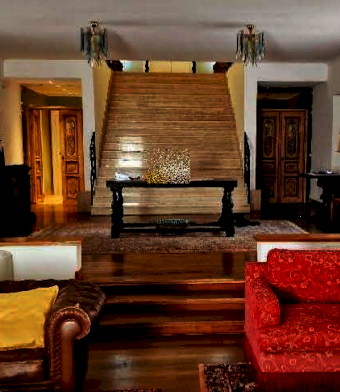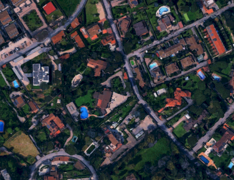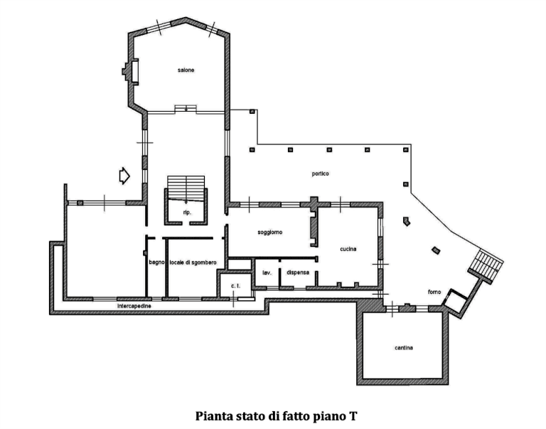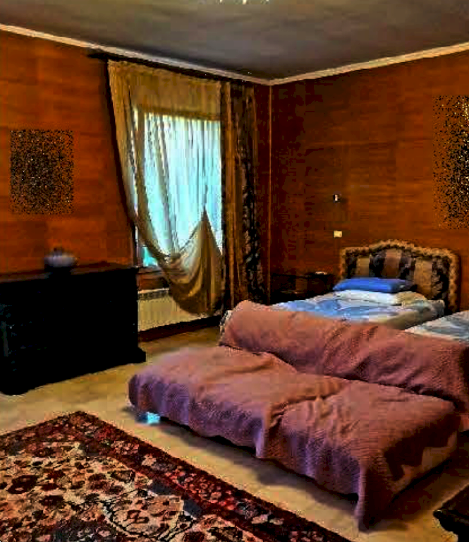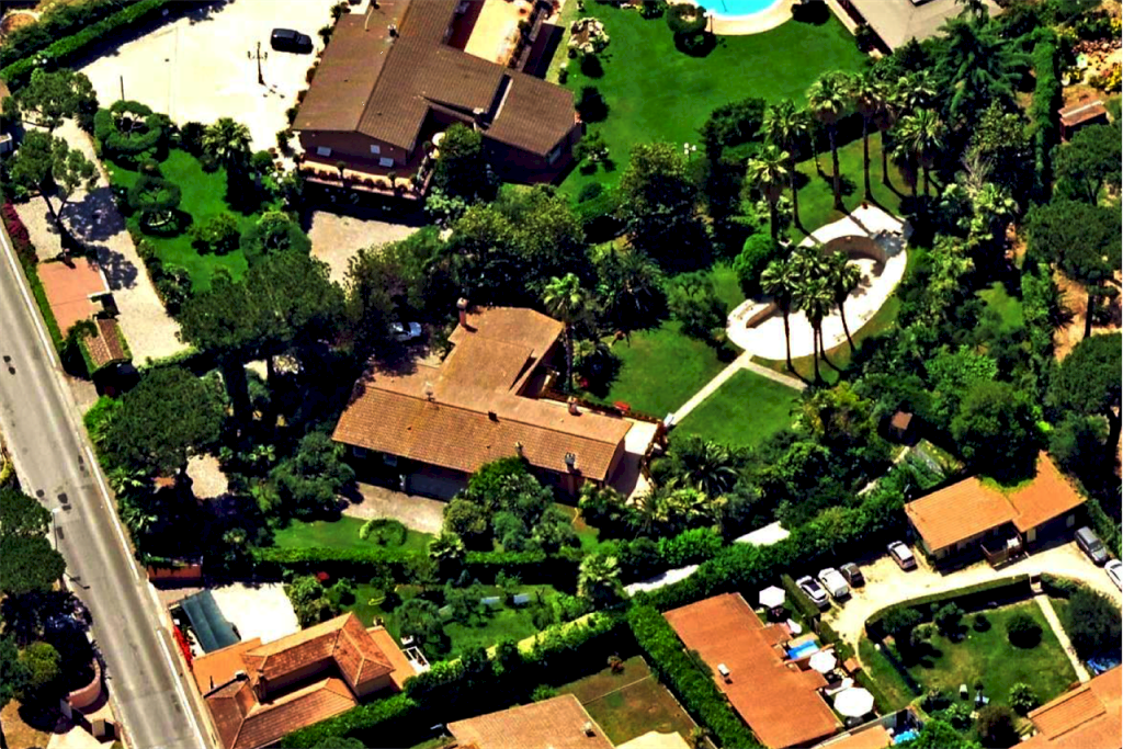 Villa unifamiliare su due livelli con area esterna di pertinenza situata in Roma (RM) in vicolo del Casale Lumbroso, composta al piano inferiore da ingresso, salone con ampio camino, soggiorno-sala da pranzo con camino, cucina abitabile con camino, locale dispensa, lavatoio, locale di sgombero, bagno, disimpegno, sottoscala adibito a ripostiglio, cavedio, centrale termica, intercapedine e cantina; all'esterno da un porticato al cui interno è stata ricavata una zona forno e dal quale si accede alla suddetta cantina. Al piano superiore, al quale si accede sia dall'ampia scala interna che si diparte dal salone sia dalla parte più elevata dell'area esterna, da ingresso disimpegni, soggiorno-studio, quattro camere, tre bagni, cabina armadio e ripostiglio. Area esterna di pertinenza che circoscrive l'abitazione e che si sviluppa con forma trapezoidale su vari livelli, collegati da scala esterna e camminamenti lastricati, e delimitata da muro di confine lungo la pubblica via e da rete metallica rivestita da siepe lungo i restanti lati. Sull'area esterna di pertinenza della villa insistono una piscina interrata a forma libera di 120 mq, una tettoia in legno di copertura per posti auto di mq 40, una serra di circa mq 20 con struttura in ferro e pannellature in plastica trasparente, dotata di illuminazione e pozzo per l'impianto di irrigazione.