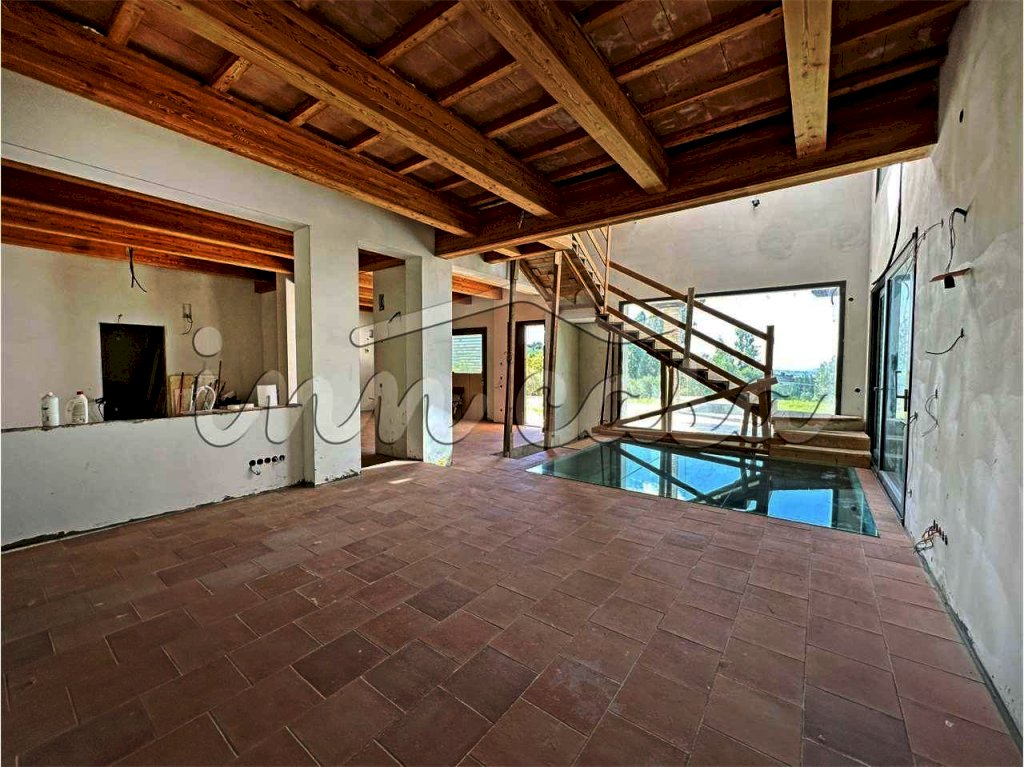 Presentiamo in vendita questa esclusiva villa composta da due unità immobiliari con ingressi indipendenti, piscina a sfioro di circa 80 metri quadri con zona idromassaggio e nuoto contro corrente, giardino recintato di oltre 5.300 metri quadri in parte piantumato con ulivi. La suggestiva vista sul mare è il fulcro intorno a cui si è sviluppata l'architettura contemporanea dell'intera struttura. I materiali di pregio recuperati dall'antico casolare esistente e le caratteristiche innovative di bioedilizia e geotermia a basso impatto ambientale, rendono la residenza davvero unica. L'opportunità di poter personalizzare e rifinire la proprietà a proprio gusto è un'altra virtù della villa. L'appartamento padronale si sviluppa su due livelli: al piano terra ampio soggiorno con living e portico di oltre 50 metri quadri, cucina con ampia vetrata per un sorprendente affaccio sul portico di oltre 20 metri quadri, dispensa, bagno. Il piano superiore è composto da tre camere da letto ognuna con bagno privato e altra stanza studio. Il piano interrato ha una superficie di 160 metri quadri suddivisi in sei vani pavimentati dotati di tutti gli impianti tecnologici, idrico sanitari, riscaldamento a pavimento, domotica, filodiffusione e ventilazione con una grande zona relax, bagno di grandi dimensioni con vasca, ampio bagno turco e doccia emozionale. Gli altri quattro vani possono essere destinati a sauna, palestra, sala cinema o altra camera da letto. Presenti i vani tecnici dedicati agli impianti della piscina e dell'impianto geotermico-riscaldamento. L'appartamento dependance è servito da due accessi indipendenti ed è anch'esso su due livelli, ha una superficie di 60 metri quadri con soggiorno, cucina zona pranzo, grande bagno. Il piano superiore della dependance è composto da due camere matrimoniali e bagno con doccia. Dalla zona giorno dell'appartamento dependance si accede al piano sottostante di 55 metri quadri composto da un bagno e due vani da adibire a proprio piacimento. L'ingresso alla proprietà conduce alle autorimesse in corpo staccato. Gli spazi interni sono generosi, raffinati ed armoniosi e si prestano con grande facilità ad essere personalizzati. L'esterno della proprietà è caratterizzato dalla sorprendente vista mare e la piscina a sfioro che fa la differenza essendo un'area di relax e divertimento nella comodità di casa. La richiesta ammonta a 890.000 Euro. Riferimento annuncio V02710