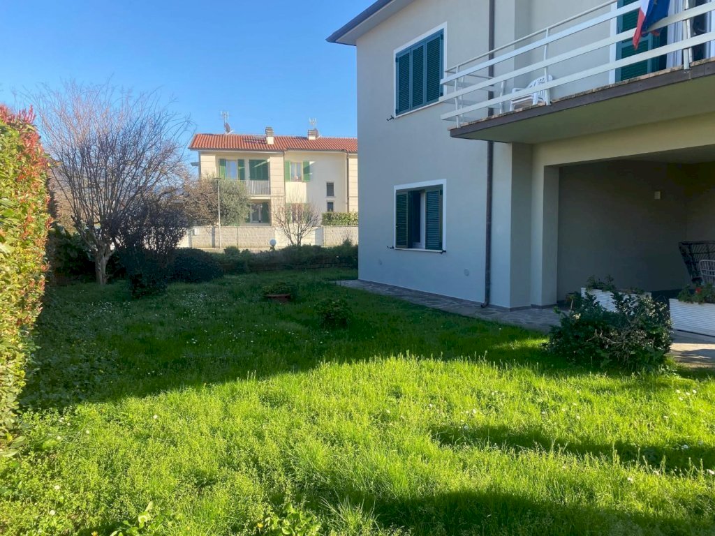 Salendo al primo piano, l'appartamento offre un ampio soggiorno con balcone, un tinello con angolo cottura, due camere matrimoniali e un bagno. La villa è circondata da un incantevole giardino di 1.000 m² con due ingressi carrabili, offrendo la possibilità di dividere la proprietà in due porzioni separate. Le facciate e gli infissi sono stati recentemente rifatti grazie alle agevolazioni del 110%, garantendo efficienza energetica e comfort.