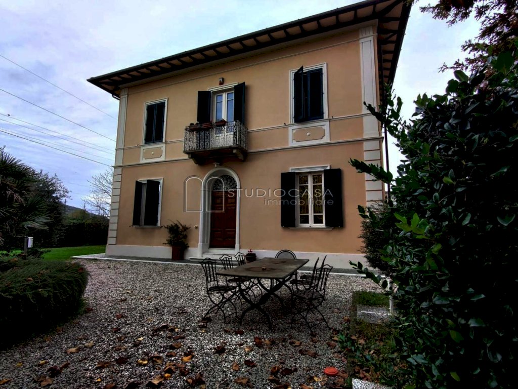 LUNGOMONTE SAN GIULIANO TERME: Elegantissima villa singola IN STILE LIBERT, immersa in parco di oltre 2100 mq con doppio ingresso, 300 mq di prestigiosa abitazione completamente ristrutturata nel rispetto della struttura originaria e nel 2022 adeguata con sostituzione infissi, installazione di pannelli solari e pompe di calore in modo da rendere l'abitazione efficiente dal punto di vista energetico, saloni con camino, ampia cucina, studio, tre bagni, cinque camere oltre a dependance nel giardino polifunzionale ottima anche per accogliere ospiti, personale di servizio oppure realizzare uno studio professionale. BELLISSIMA SOLUZIONE IN CONTESTO RICCO DI VERDE