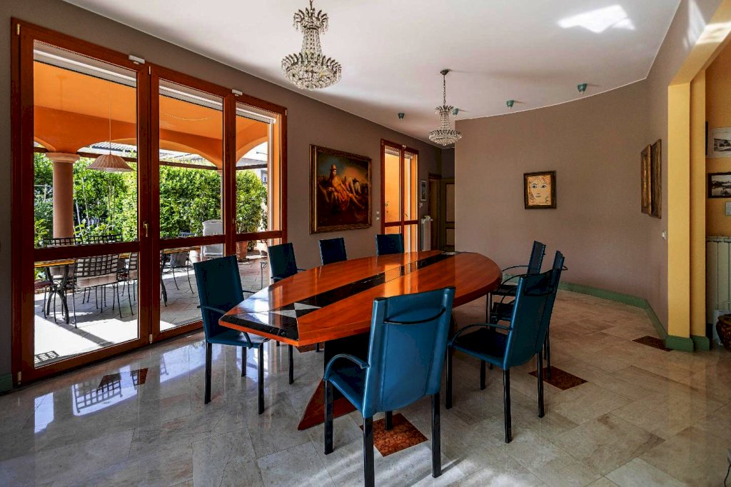 San Miniato, frazione Ponte a Egola, è proposta la vendita di una superba villa libera su quattro lati, divisa in due unità immobiliari e attestante su due fronti e circondata da un grande giardino. Le linee sinuose, le grandi vetrate, il doppio volume, rendono questa villa molto accattivante, seppur pratica da vivere. L’ingresso avviene attraverso un ampio loggiato, un soggiorno di circa 130 mq. inondato di luce fa comprendere immediatamente la maestosità della residenza: spazi fluidi che si fondono con l’esterno, e che vedono protagonisti la scala imponente, l’antico foyer, una zona lettura ed un esteso living proiettato verso l’esterno. Un piccolo dislivello conduce alla luminosa sala da pranzo che conduce alla cucina: ambedue gli ambienti hanno delle ampie vetrate che conducono al loggiato, un ambiente da vivere anche in autunno. Un servizio igienico per gli ospiti è sito al piano terra. L’imponente scala sbarca in una zona in doppio volume, che conduce a uno studio o camera da letto, una master bedroom, con bagno e guardaroba, due camere da letto matrimoniali con bagno e guardaroba, una camera matrimoniale, un altro soggiorno con nicchia cottura, bagno. L’ampia mansarda è corredata di un servizio igienico. Gli spazi a servizio, quali doppio garage, lavanderia/stireria e dispensa, si trovano al piano terreno. Le finiture sono di altissimo livello. Si precisa che l'indirizzo non identifica l'ubicazione esatta dell'immobile, ai fini della tutela della riservatezza del venditore.