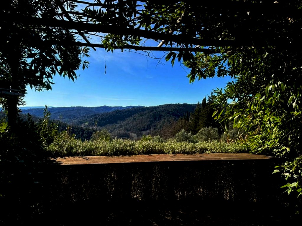 Ubicata sulla cima di un colle che contempla l'incantevole paesaggio circostante, la dimora si circonda di un vasto terreno di proprietà che accoglie nei suoi 45 ettari di fitti boschi e 800 piante di olivi, per la produzione di un gustoso olio extra vergine di oliva.