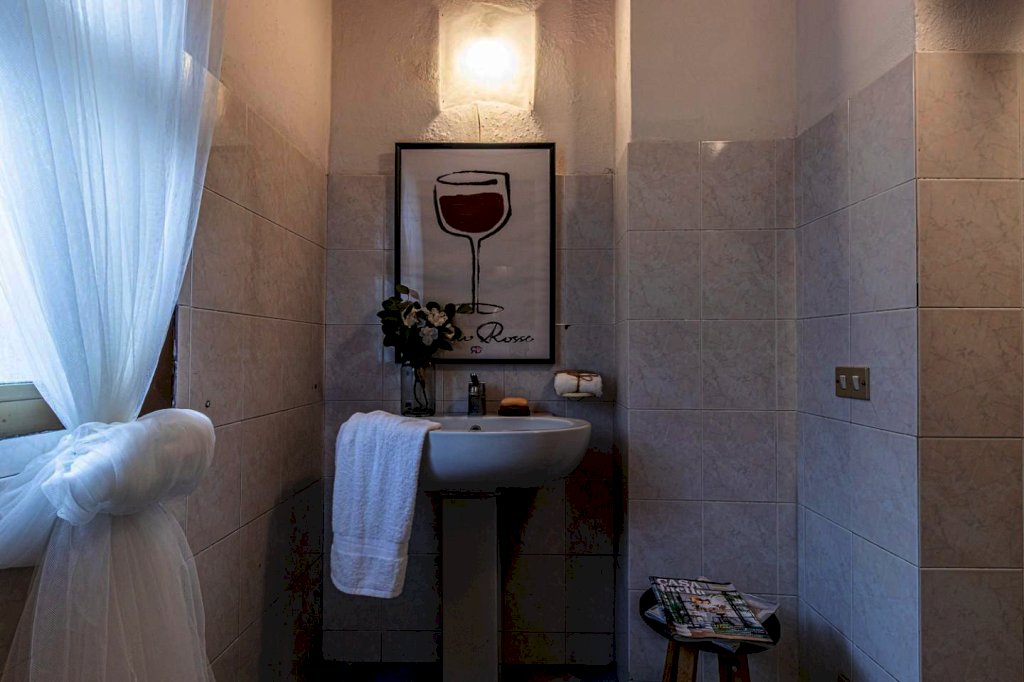 accedi anche ad un bagno con doccia pratico e funzionale.
