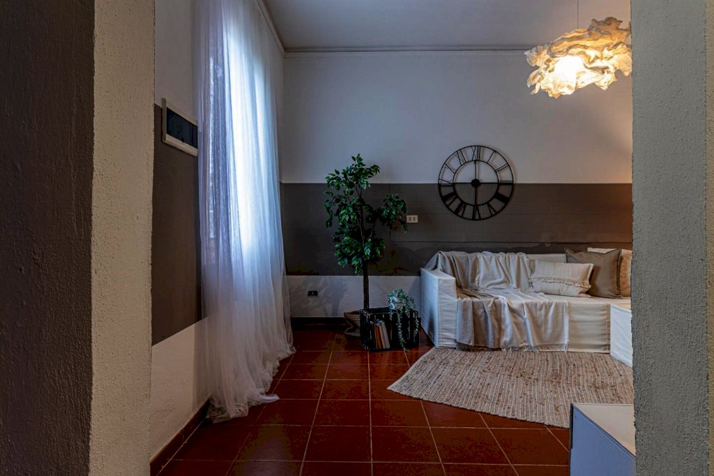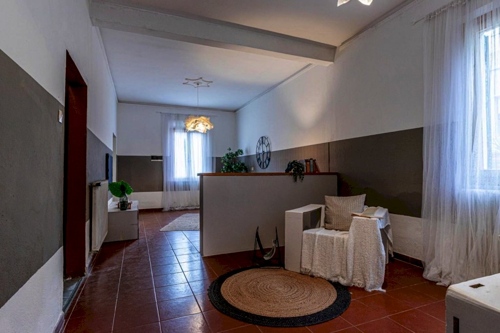 Varchi la porta dʼingresso in legno originale e ti accoglie lʼandrone con porta a vetri; è il fulcro centrale da cui vivi e raggiungi tutte le stanze