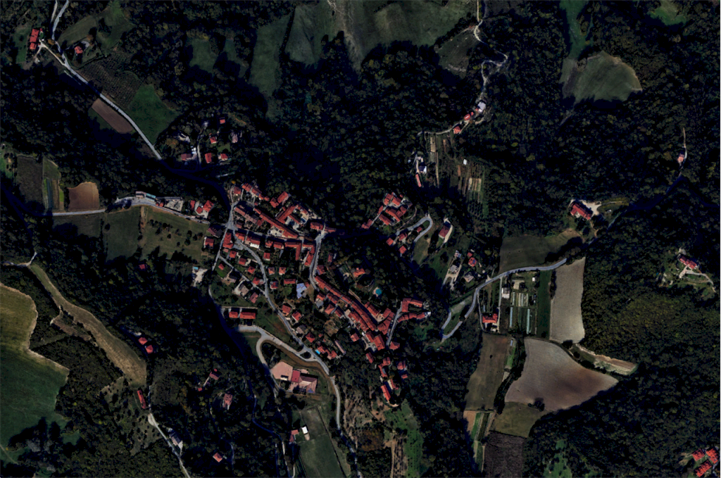 Completa la struttura area cortilizia in parte destinata a giardino ed in parte a bosco di 2.534,00 mq