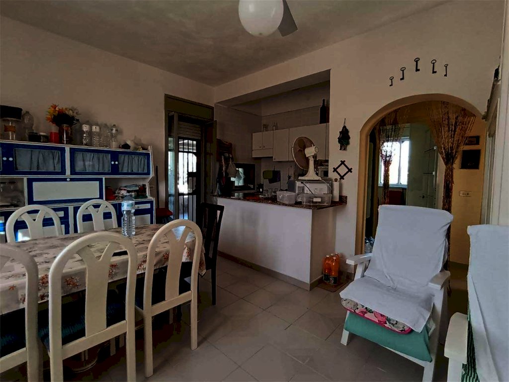 L'immobile, al suo interno, è composto dalla veranda, ingresso su cucina soggiorno in unico spazio, disimpegno, camera matrimoniale con finestra, seconda camera con finestra e bagno con doccia e finestra, veranda retrostante con termocopertura. Esternamente, la casa ha un secondo bagno e un ripostiglio, oltre all'area barbecue e la doccia esterna.