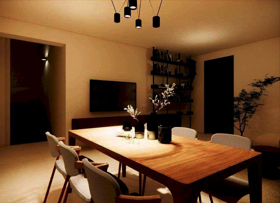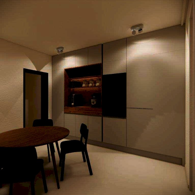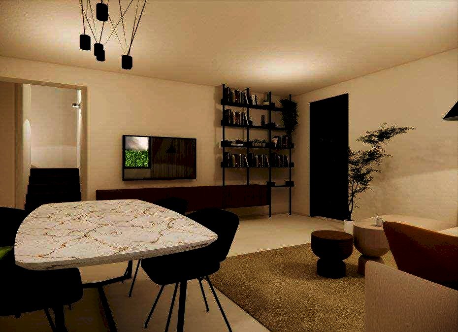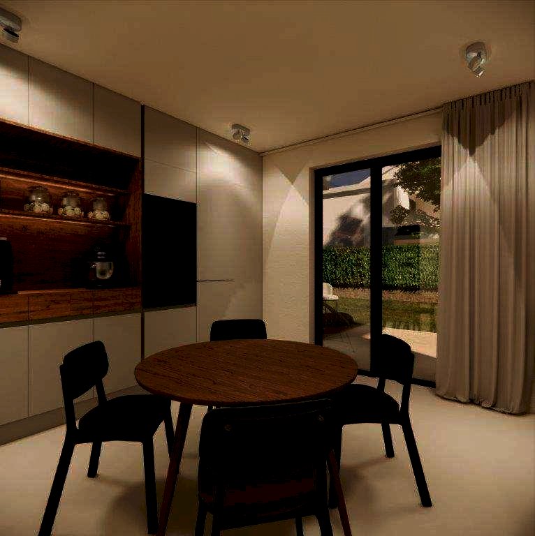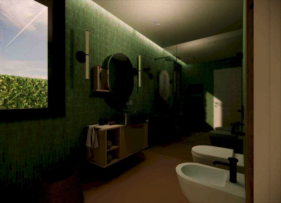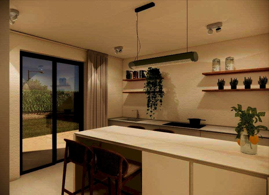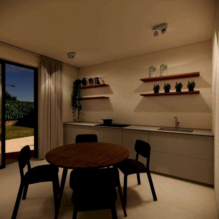 La casa si sviluppa su tre livelli con ingresso sul soggiorno di 30 mq e con finestra, disimpegno con vano scala, lavanderia con bagno, cucina abitabile con accesso alla veranda e garage singolo. Il piano primo ha corridoio, camera matrimoniale con accesso al balcone principale, bagno con finestra, disimpegno, ripostiglio, camera da letto con balcone esclusivo, camera da letto con balcone condiviso (con la camera matrimoniale). Al piano mansardato, รจ presente il piano sottotetto di 14 mq e il terrazzo calpestabile di circa 5 mq.