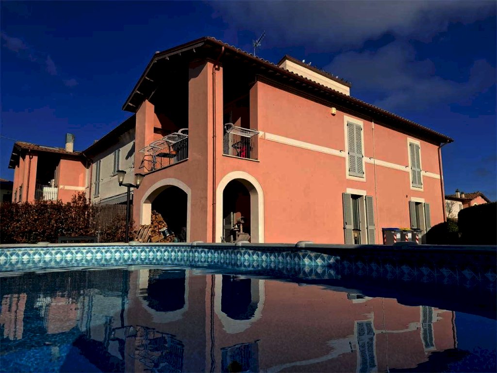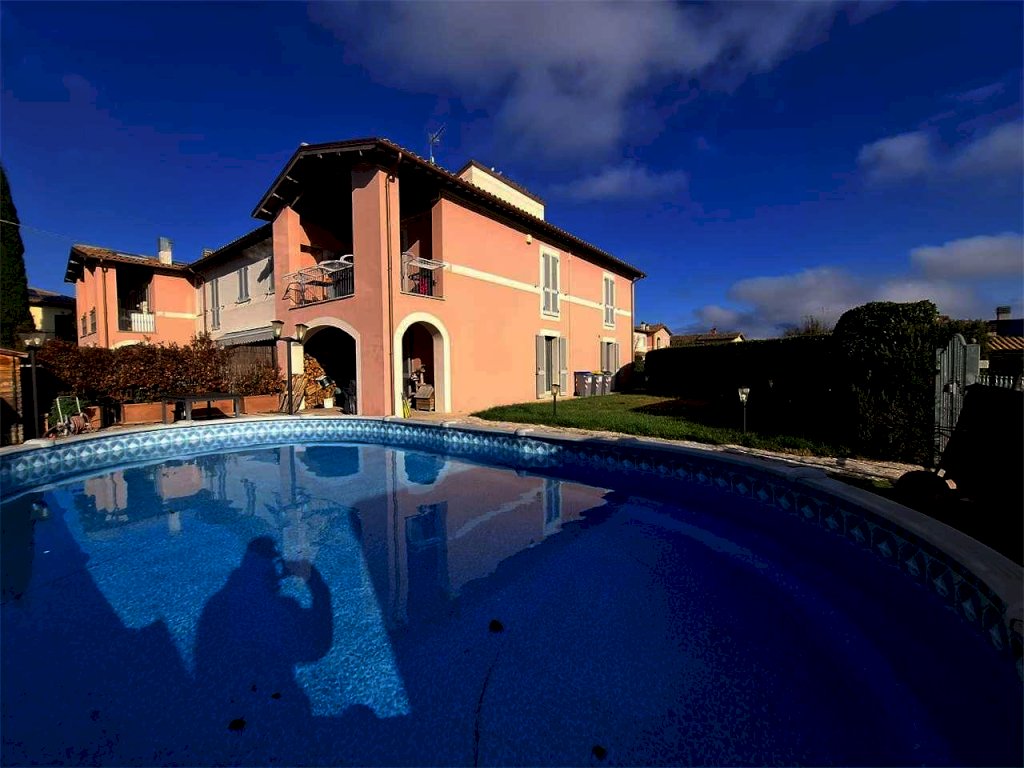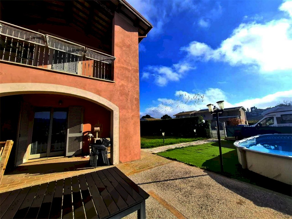 Spoleto, primissima periferia servita e richiesta, disponiamo di una splendida porzione di villa disposta su più livelli. Al piano terra troviamo un ampio salone con accesso al giardino, cucina abitabile e bagno; al piano primo tre camere matrimoniali, un ulteriore bagno e una loggia coperta con affaccio sulle colline circostanti. Soffitta/torretta che puó essere adibita anche a studio al piano secondo. Il piano seminterrato è composto da una spaziosa taverna, un garage doppio e un vano lavanderia. Completa la proprietà un ampio giardino angolare con piscina. A livello tecnologico la casa è fornita di pannello fotovoltaico da 4,5 Kw e pannello solare per acqua calda sanitaria e riscaldamento a pavimento. Split con aria condizionata. L'immobile usufruisce di accumulo di acqua piovana per l'irrigazione del giardino. Nel prezzo di vendita si intende compresa la cucina del piano terra.