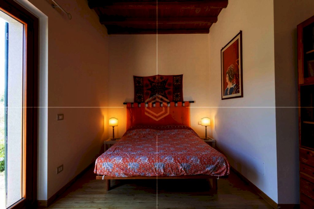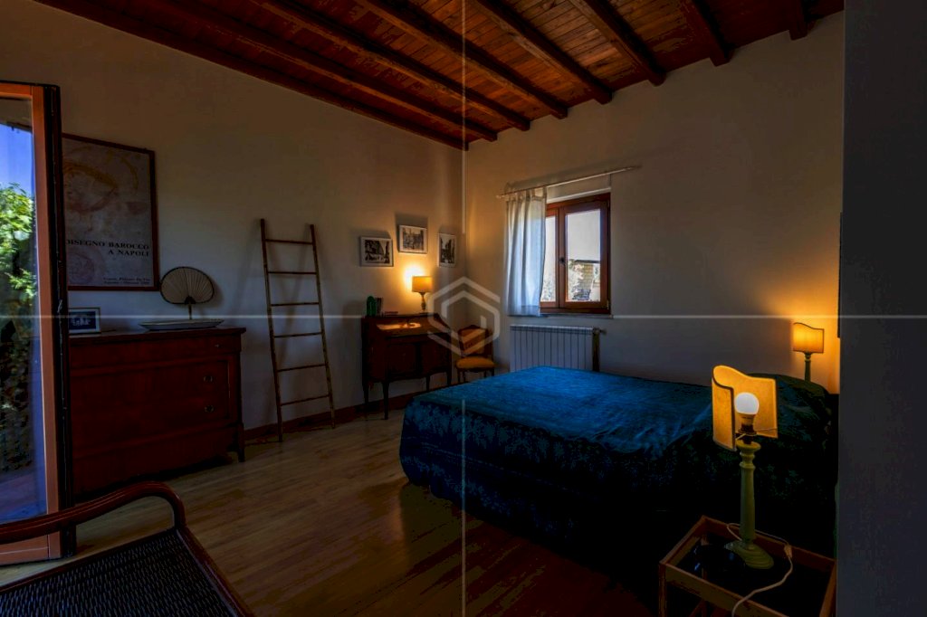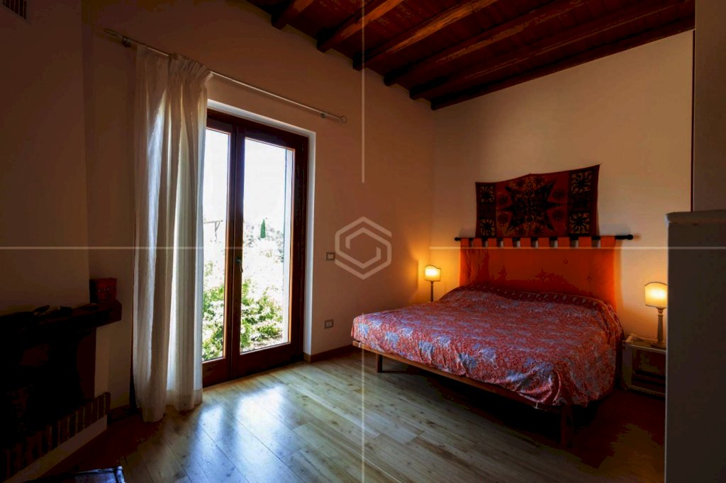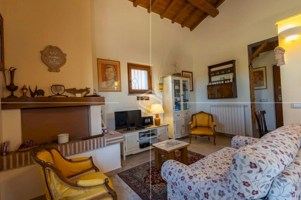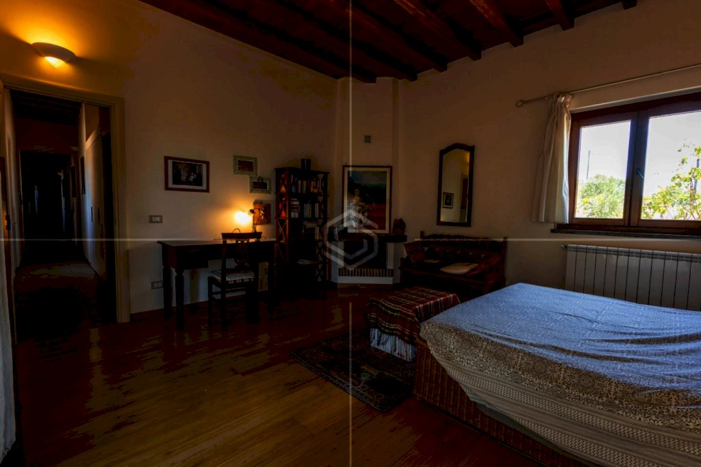 Completano questa porzione: pavimenti in travertino e parquet in castagno, soffitti con travi a vista, infissi in legno con vetro-camera, riscaldamento autonomo GPL con doppio termostato, isolamento termico e struttura antisismica.