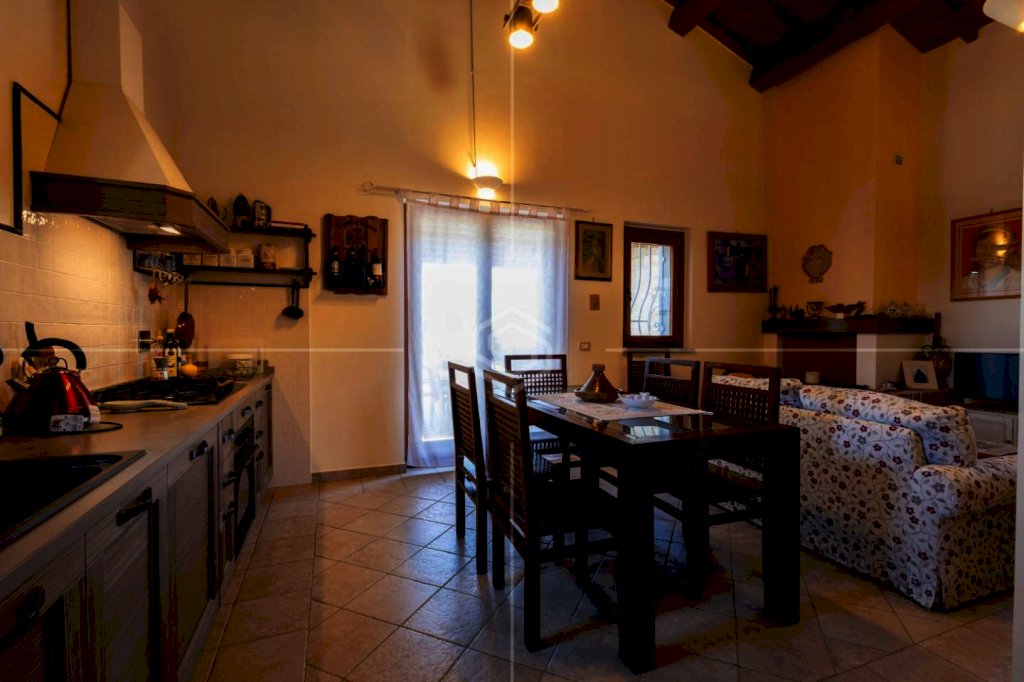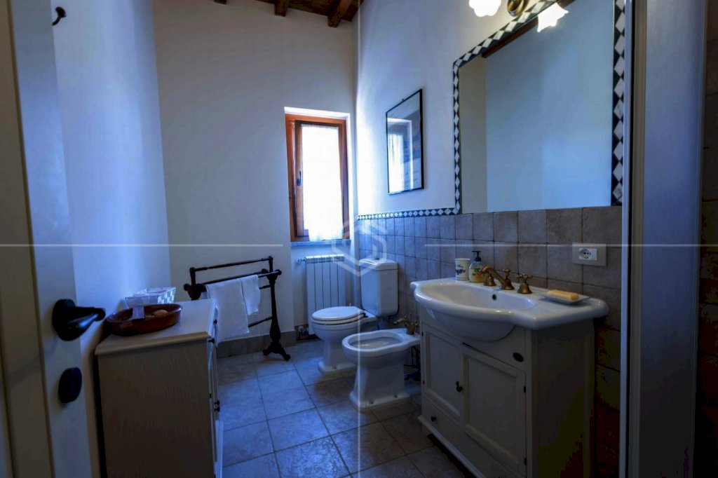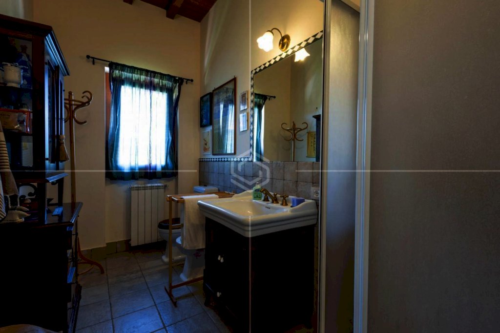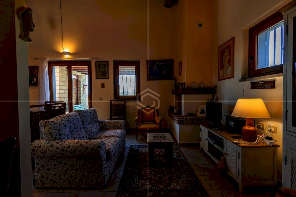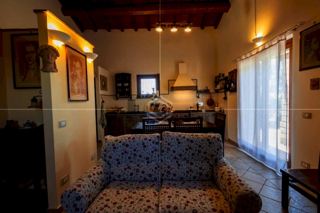 Completano questa porzione: pavimenti in travertino e parquet in castagno, soffitti con travi a vista, infissi in legno con vetro-camera, riscaldamento autonomo GPL con doppio termostato, isolamento termico e struttura antisismica.