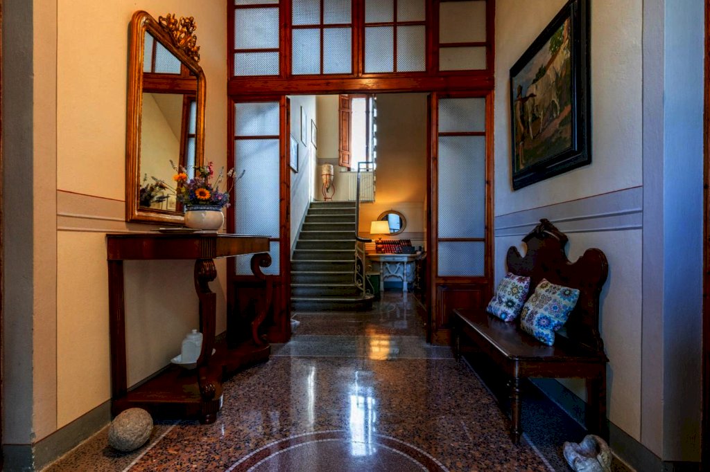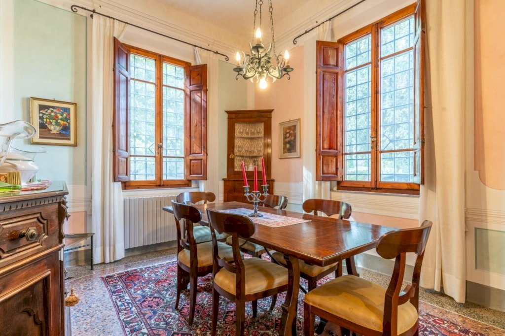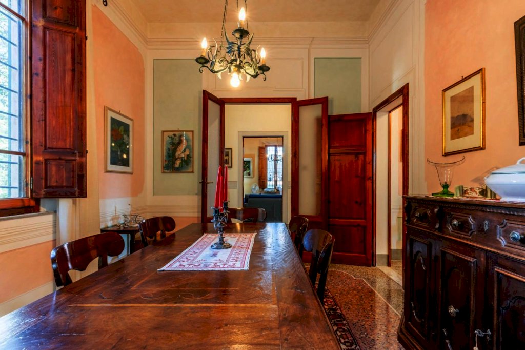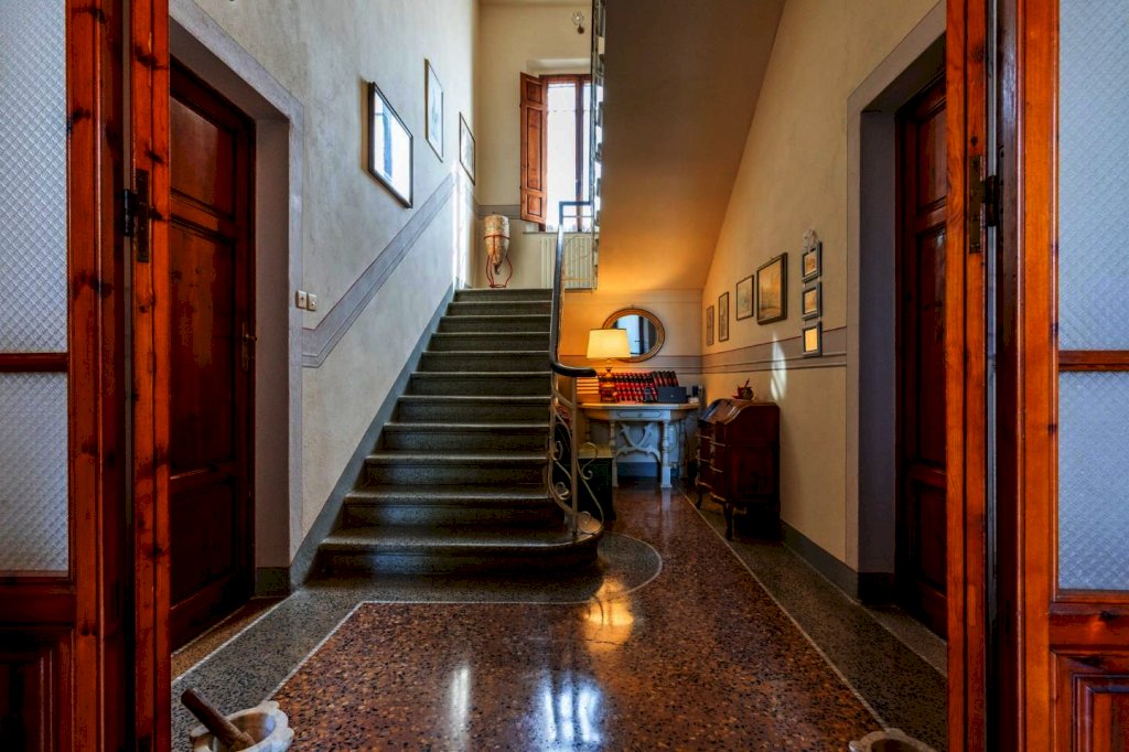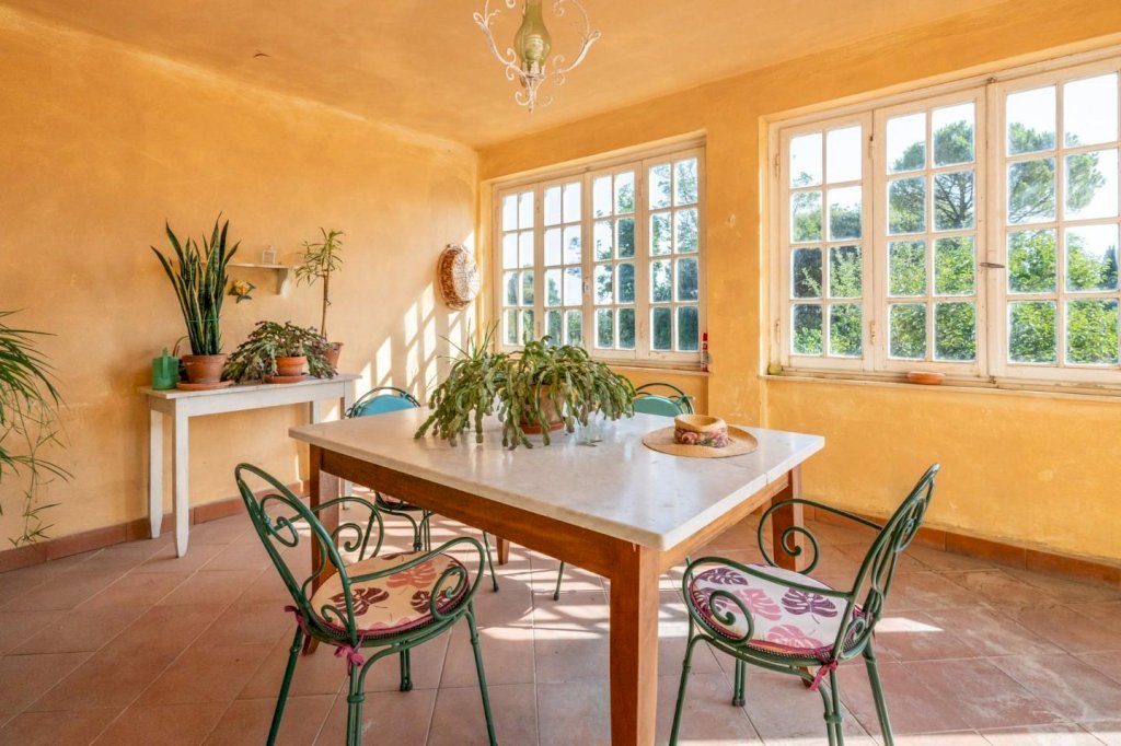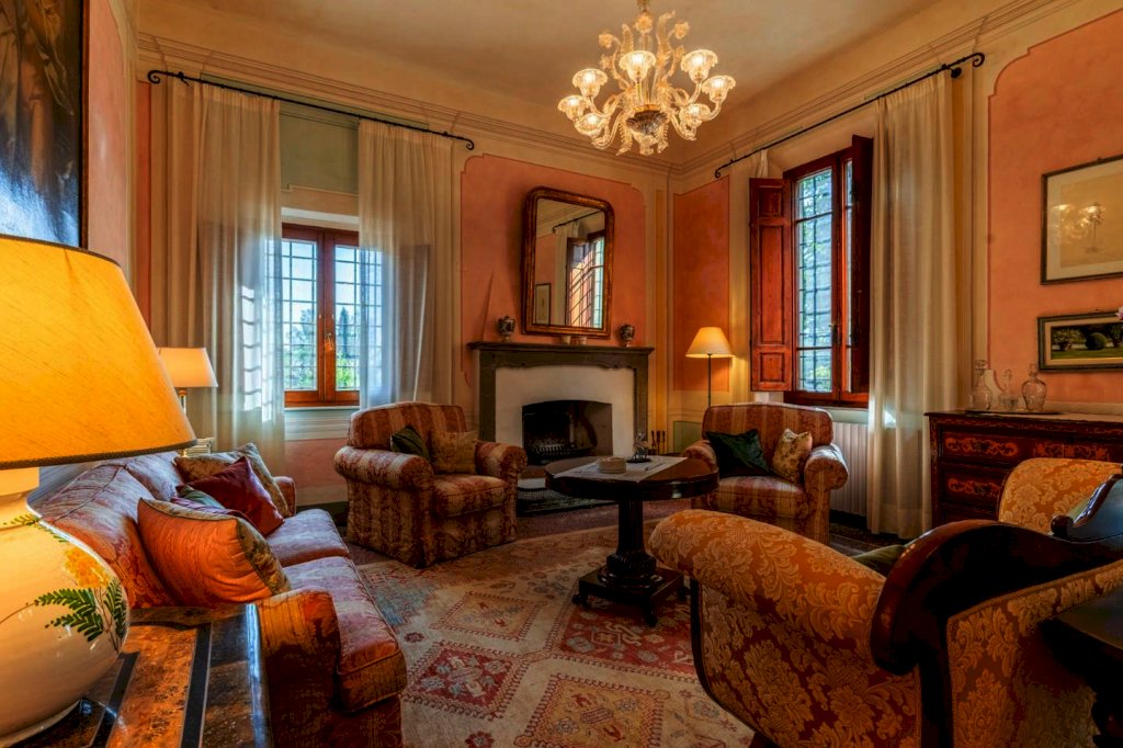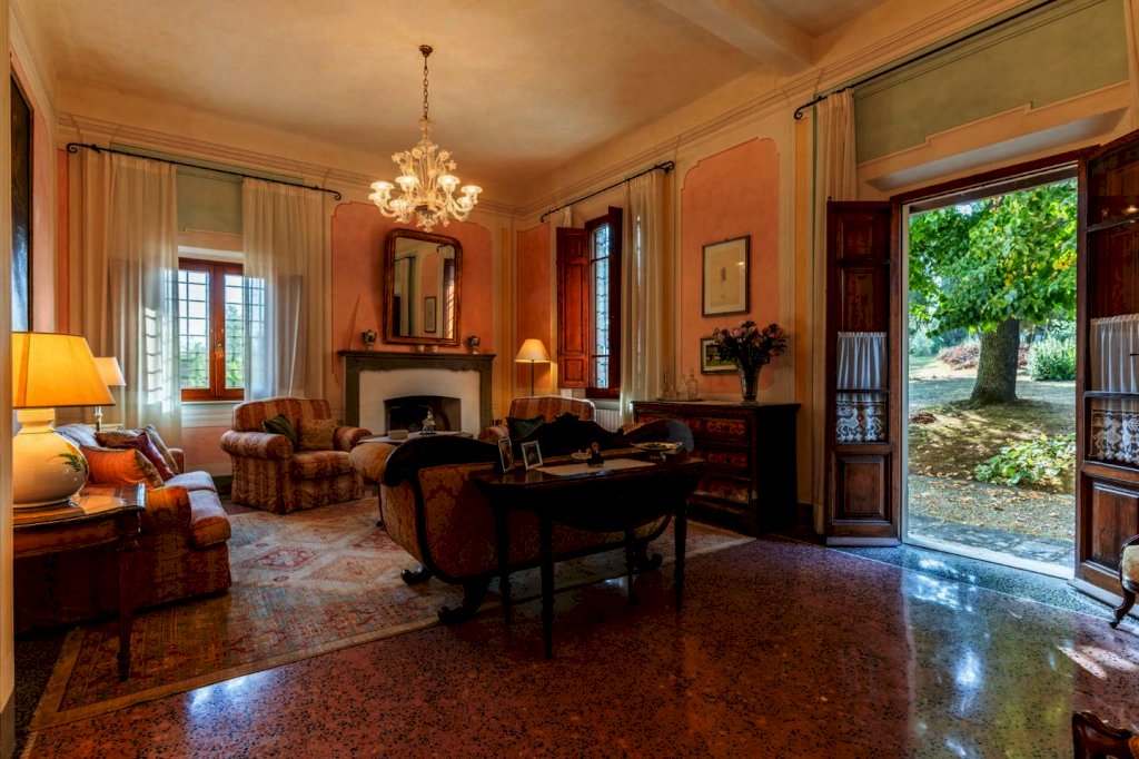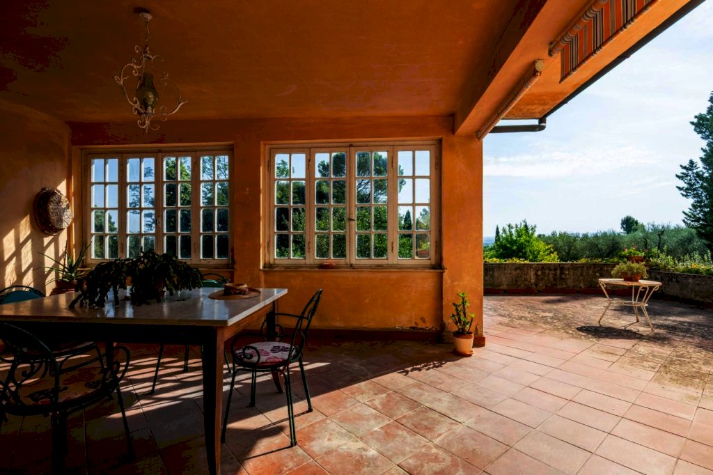 La villa principale, di circa 640 mq, è disposta su 3 livelli, oltre al piano interrato destinato a cantine. La zona giorno al piano terra, di circa 145 mq, è suddivisa in un ampio ingresso/disimpegno, salotto collegato ad un ampio soggiorno con camino, altro salotto, piccolo disimpegno, bagno e cucina abitabile con accesso ad una veranda ed a una terrazza di circa 45 mq con una splendida vista sulle colline; al piano primo, con accesso dalla scala interna, troviamo 4 camere matrimoniali, uno studio con accesso al balcone, una stanza armadi ed un bagno; al piano secondo, proseguendo dal vano scala interno, troviamo la soffitta praticabile suddivisa in vari locali con finestra, con altezze ben sfruttabili (minimo h 2,32 - massimo h. 4,20). Al piano interrato, con accesso dal giardino, troviamo le cantine di circa 210 mq.