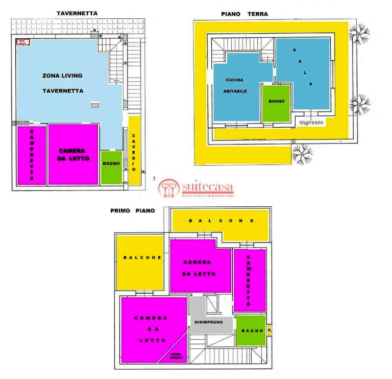 La villa si sviluppa su tre livelli, per un totale di circa 222 mq interni, di cui 100 mq di tavernetta con entrata indipendente, 62 mq di piano terra con soggiorno e cucina abitabile e bagno, e 60mq di primo piano con tre camere da letto e bagno. La tavernetta puó essere adibita ad un'altra unità abitativa, in quanto è composta da una zona living, due camere da letto, un bagno e un ripostiglio.