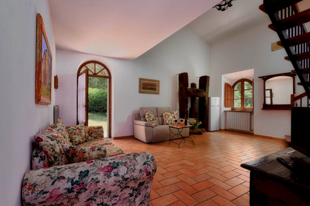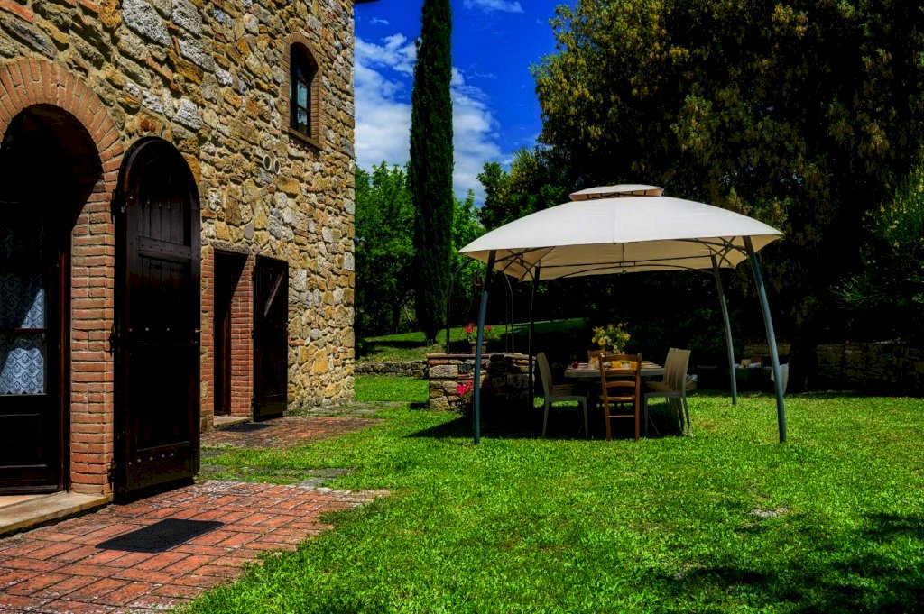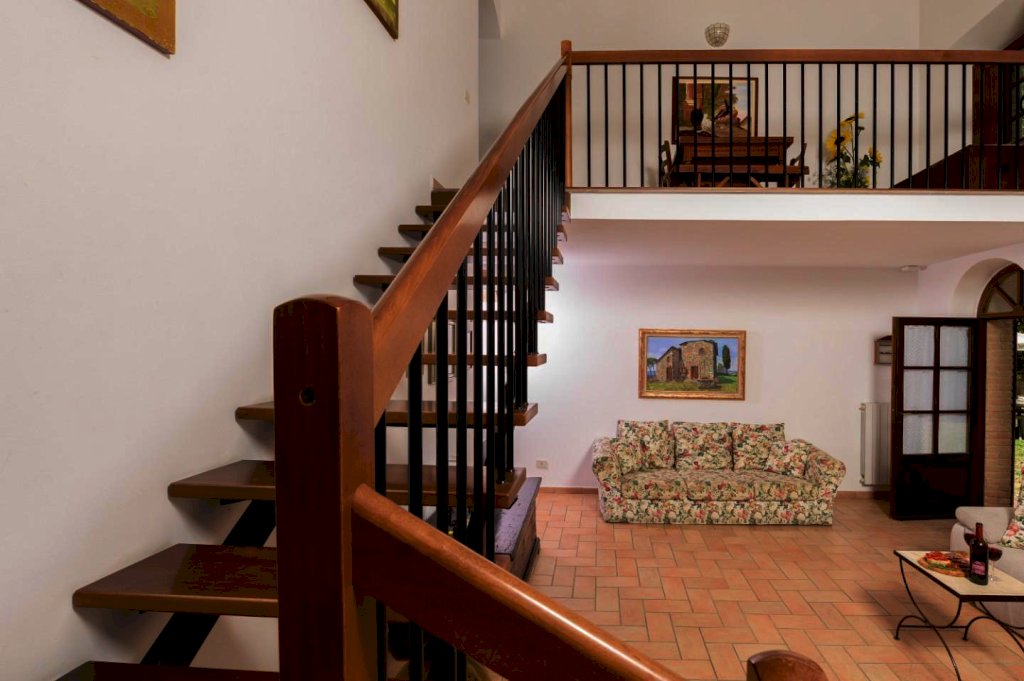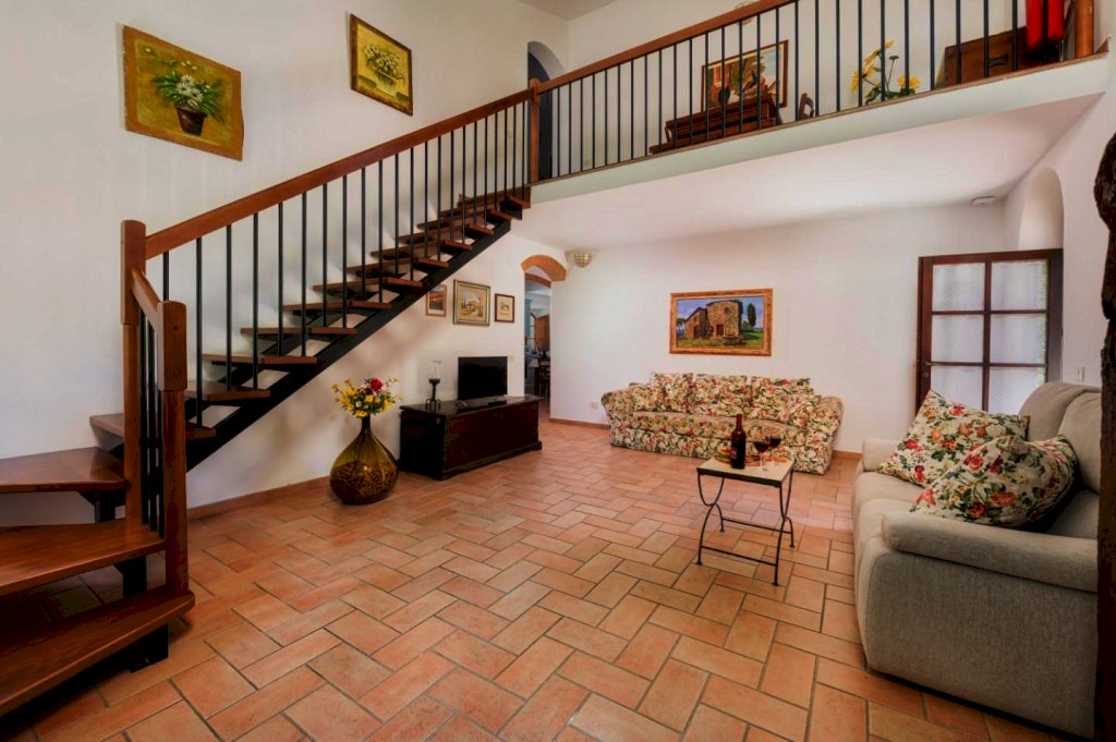Ristrutturata nel pieno rispetto del suo caratteristico stile toscano, si presenta arredata con estremo gusto e rifinita con materiali di altissimo pregio, tra cui spiccano tipiche pavimentazioni in cotto, strutture in caratteristica pietra serena e splendidi mattoni senesi.