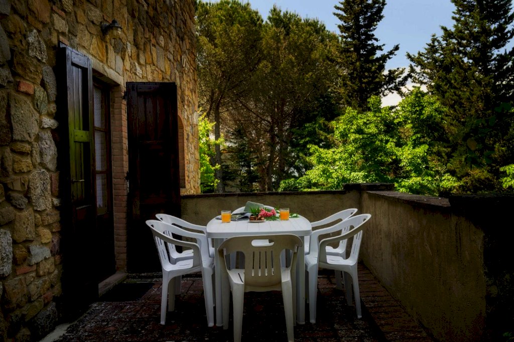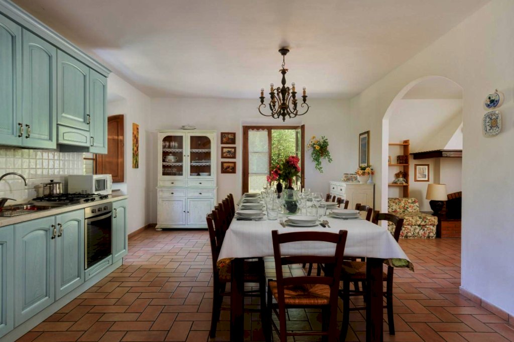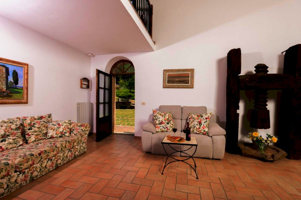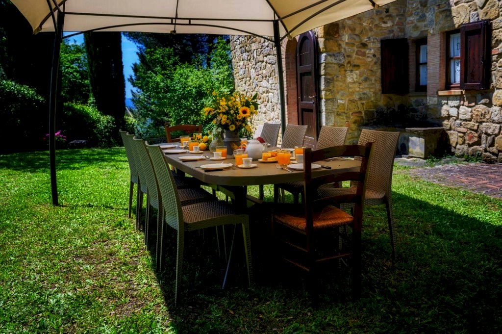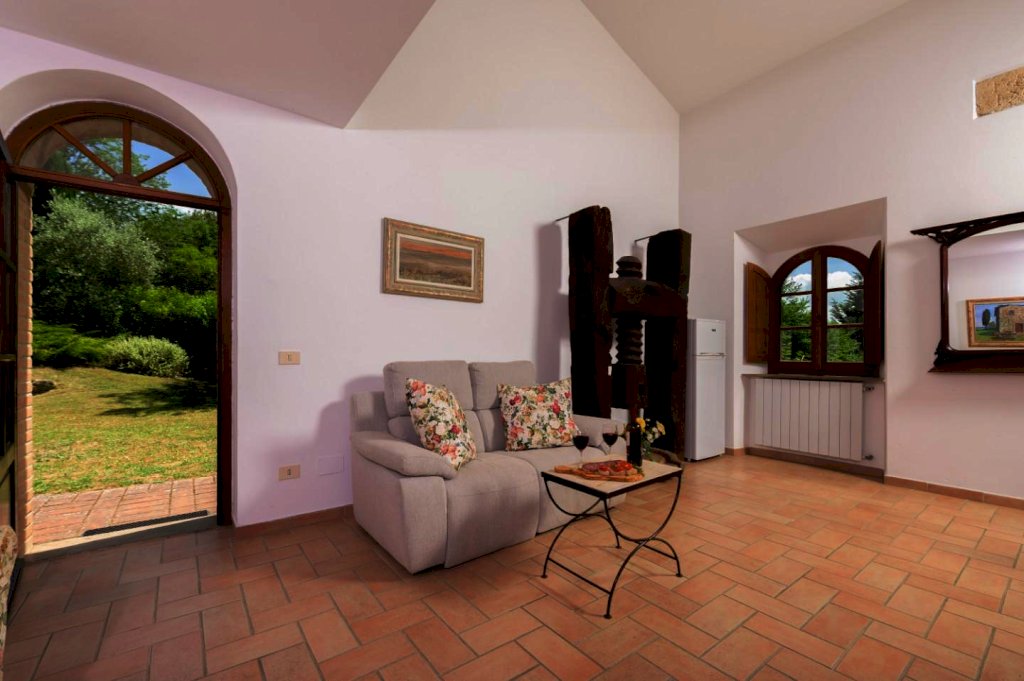 Ristrutturata nel pieno rispetto del suo caratteristico stile toscano, si presenta arredata con estremo gusto e rifinita con materiali di altissimo pregio, tra cui spiccano tipiche pavimentazioni in cotto, strutture in caratteristica pietra serena e splendidi mattoni senesi.
