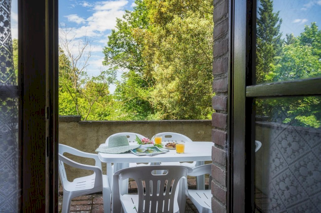 Dalla splendida terrazza, lo sguardo corre sulla meravigliosa vallata, per poi perdersi tra i più caratteristici panorami della campagna toscana.