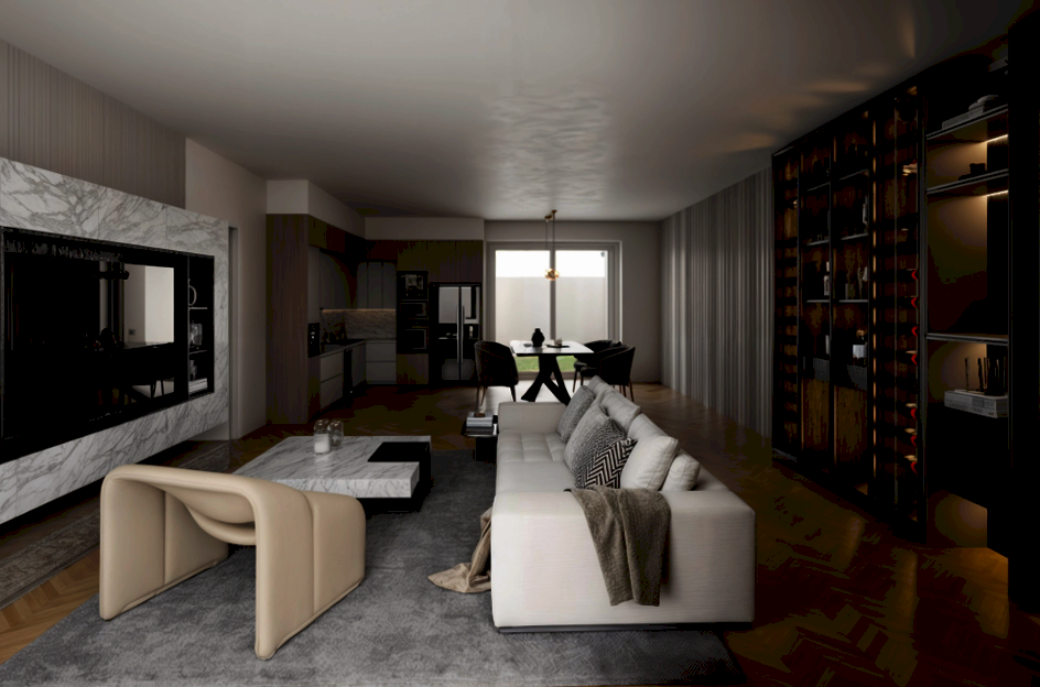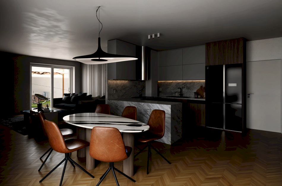 La villetta si sviluppa su un unico livello con una superfice ben distribuita, l'ingresso si apre su un ampio openspace che integra armoniosamente zona living e cucina a vista, valorizzato da grandi aperture che assicurano luce naturale durante tutto l'arco della giornata. Lo spazio è predisposto per l'installazione di isola o penisola, perfetto per chi ama una cucina moderna e conviviale.