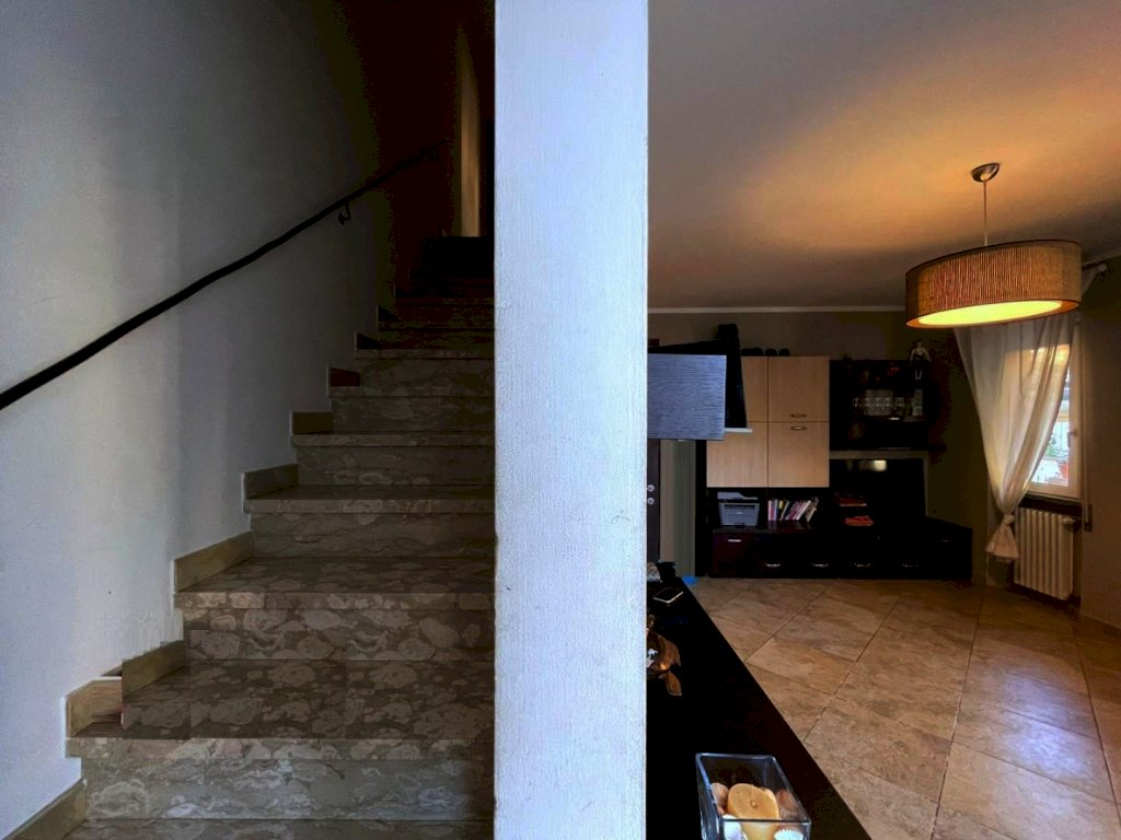 Attraverso le scale poste nel soggiorno si raggiunge il piano primo. La zona notte si sviluppa su questo piano ed è composta da tre camere accoglienti. La camera matrimoniale offre ampi spazi e un'atmosfera elegante, mentre le altre due camere risultano singole, una delle quali versatile da utilizzare anche come stanza armadi. Il bagno principale è dotato sia di una doccia moderna che di una vasca, per rispondere a ogni esigenza di relax e praticità.