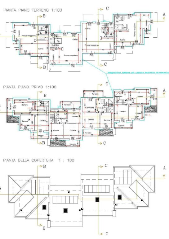 Gli immobili si sviluppano su due livelli al piano terreno ci accoglie un'ampia zona giorno-cottura ( 45 mq ) con bagno e ripostiglio, al piano primo troviamo le tre camere un bagno e due balconi , oltre sottotetto con altezza massima 1,80 cm.
