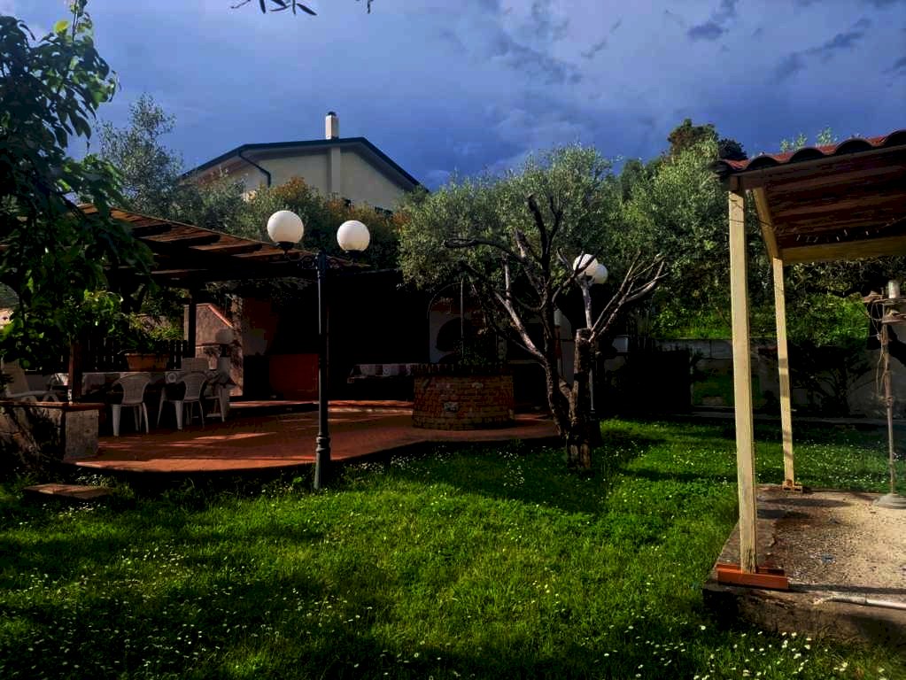 In vendita a Carrara, In zona pedecollinare vicinanze Corvenale vendiamo luminosa villetta a schiera angolare libera su tre lati di circa 250 mq con 900 mq di giardino circostante ben organizzato, Questa elegante proprietà, con vista aperta rivolta al mare, si sviluppa su più livelli garantendo ampi spazi e comfort. Caratterizzata da 3 possibilità di ingresso, composta da: Al piano terra Ingresso, ampia taverna con camino, cucina, bagno, cantina e garage con 2 posti auto; al piano primo/Rialzato: ampia cucina abitabile con apertura sul giardino, soggiorno con terrazza abitabile, bagno; Al piano secondo: 3 camere, bagno e soffitta mansardata calpestabile. Nella parte esterna troviamo un'ampia veranda con bella cucina attrezzata con forno a legna. Questa casa rappresenta un'opportunità unica per chi cerca una luminosa residenza di prestigio con ampia spazio esterno e vista mare . Il prezzo di vendita è di 450.000 Euro.