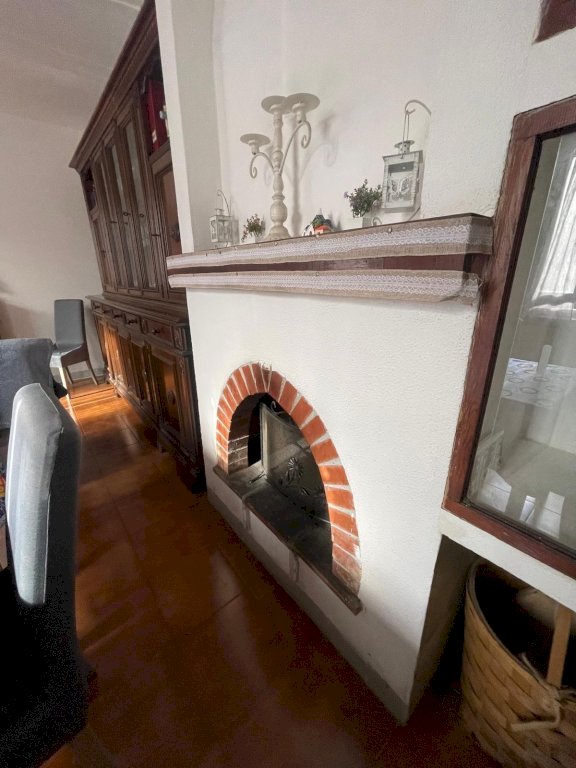 piano terra ingresso, soggiorno con camino, cucina e bagno: