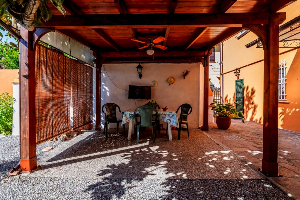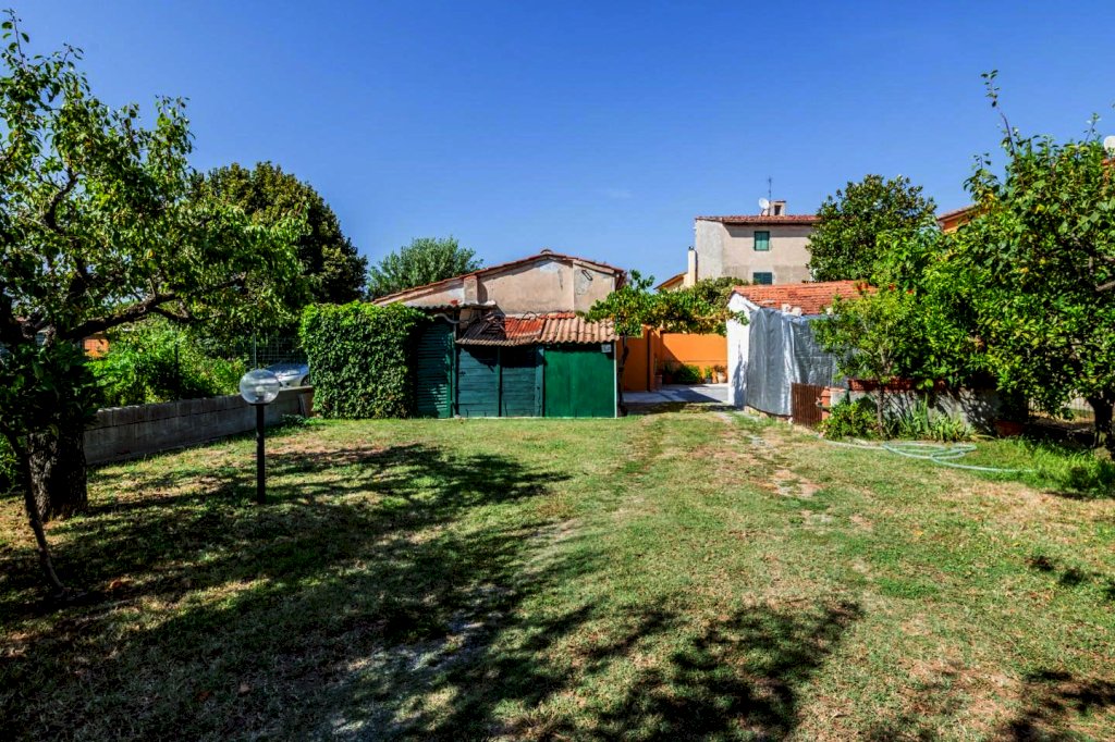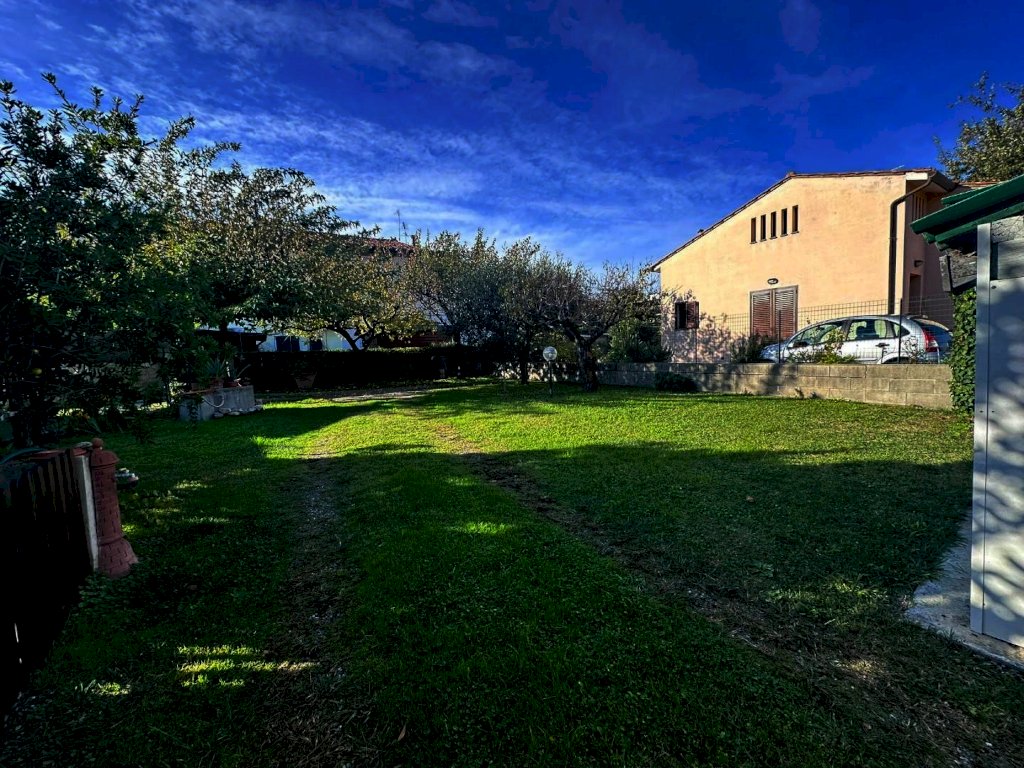 NAVACCHIO - VILLA ANGOLARE CON TRE CAMERE, DOPPI SERVIZI E GIARDINO DI 450 MQ. Questa villa angolare è un'opportunità imperdibile per chi cerca un'abitazione spaziosa e ben posizionata, situata a soli 3 minuti dalle principali vie di comunicazione. La villa è in ottime condizioni e LIBERA SU TRE LATI, garantendo così luminosità e privacy. L'ingresso di rappresentanza, apre su un ampio soggiorno e una sala da pranzo con camino, affiancata da un cucinotto semi abitabile e un comodo ripostiglio; sempre al piano terra, un wc esterno. Al piano ammezzato, un bagno con vasca offre comfort e praticità. Salendo al primo piano, si accede ad un disimpegno notte che conduce a TRE CAMERE, di cui due matrimoniali, una delle quali dotata di cabina armadi, ed una media; la zona notte è completata da un secondo bagno con doccia. Infine soffitta praticabile e finestrata.
