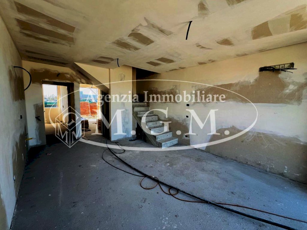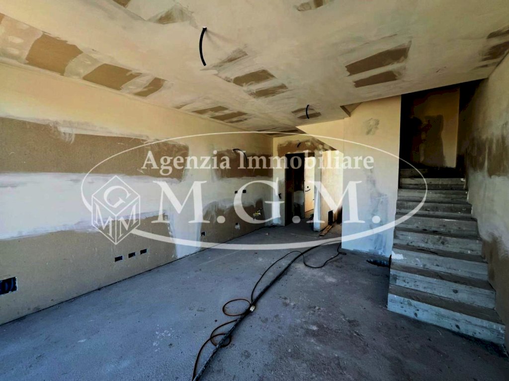 Proponiamo in vendita una splendida villetta angolare, situata in un complesso residenziale di nuova costruzione composto da otto villette. La proprietà, libera su tre lati e disposta su tre livelli (terra, primo piano e sottotetto), è circondata da un ampio giardino su tutti i lati liberi. L'abitazione, attualmente in fase di costruzione, offre la possibilità di personalizzare le divisioni interne secondo le esigenze del nuovo acquirente. Le soluzioni proposte includono, al piano terra, un ingresso, soggiorno-cucina-pranzo con angolo cottura, disimpegno, bagno e garage collegato, oppure un ingresso, ampio soggiorno, disimpegno, bagno e cucina-pranzo, come illustrato nelle planimetrie esplicative. Al primo piano, collegato da una scala interna in muratura, è possibile realizzare due o tre camere da letto, oltre al bagno, con diverse opzioni di layout disponibili, sempre come mostrato nelle planimetrie. Infine, il piano sottotetto, anch'esso collegato dalla scala interna, può ospitare una quarta camera, uno studio o una stanza multiuso. Completa la proprietà 2 posti auto esclusivi oltre al giardino.