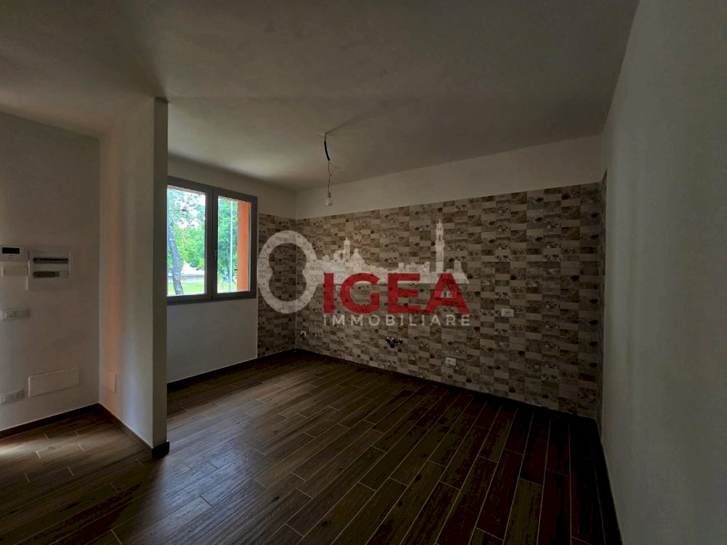 L'appartamento è composto da una zona living molto ampia e luminosa con predisposizione di cucina e soggiorno in openspace, attraverso un disimpegno si raggiunge la zona notte composta da due camere ampie, due bagni di cui uno finestrato. L'appartamento è dotato di impianto di riscaldamento a pavimento e gode di una classe energetica A4.
