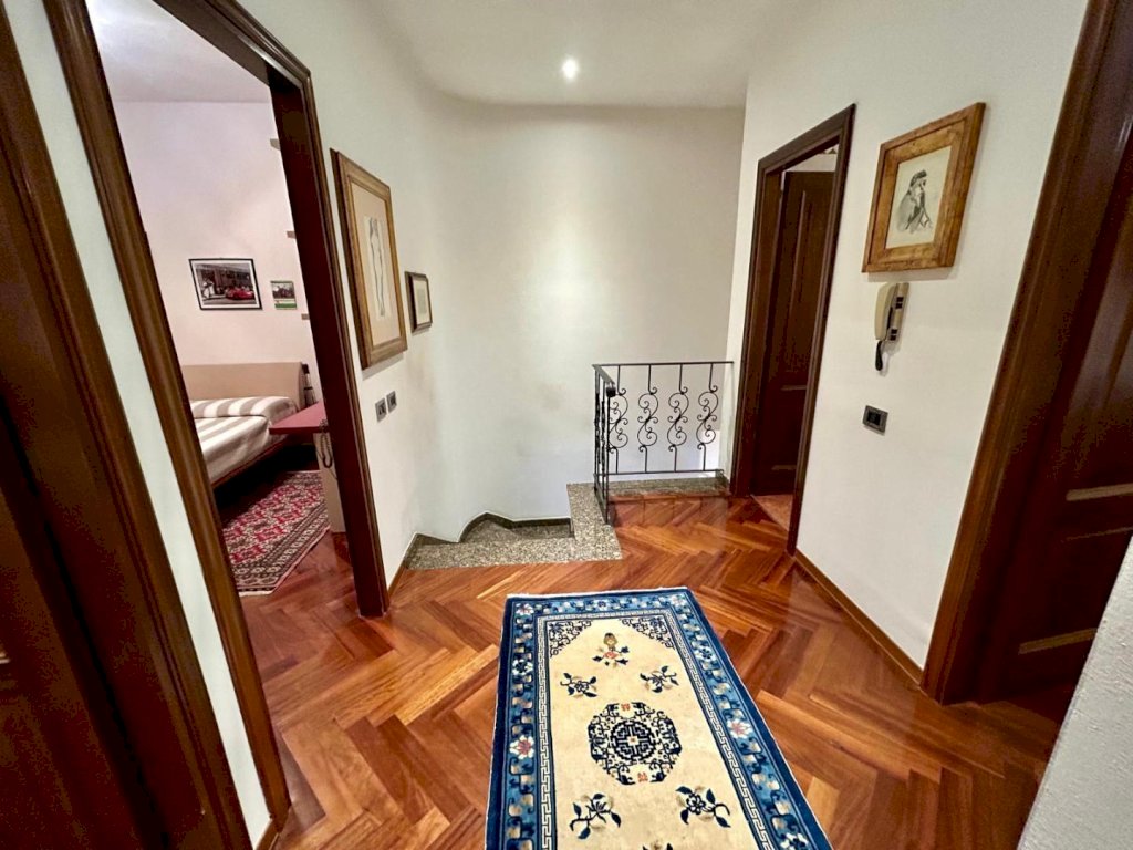 Salendo al piano superiore, si accede alla zona notte, pensata per assicurare comfort e tranquillità. Le tre camere da letto, tutte dotate di balcone, offrono spazi ben fruibili e ariosi. Il livello è servito da due bagni entrambi finestrati: uno dotato di vasca, l’altro di pratica doccia. Il pavimento in parquet che riveste l’intero reparto notte conferisce calore e una gradevole sensazione di accoglienza.