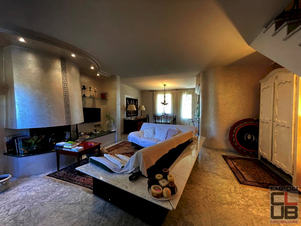 EMPOLI - RIF. M/0416 - NOSTRA ESCLUSIVA - NELLA PRIMA CAMPAGNA EMPOLESE, A 10 MINUTI DI AUTO DALL'USCITA EMPOLI EST, VILLETTA ANGOLARE LIBERA SU TRE LATI DI CIRCA 135 MQ CORREDATA DI AMPIO GIARDINO IN PARTE A RESEDE PER TOTALI 270 MQ CIRCA E ACCESSORIATA DI LABORATORIO PER ULTERIORI 100 MQ CA. INSERITA IN OTTIMO CONTESTO RESIDENZIALE ASSOLUTAMENTE DEFILATO E TRANQUILLO, AL SUO INTERNO E' COSI' COMPOSTA: ingresso, soggiorno open space che include la zona pranzo e l' angolo cottura e rivestito con un signorile marmo bianco, disimpegno, bagno con finestra e accesso diretto al giardino dalla terrazza esterna tergale. Tramite l'elegante vano scala si raggiunge il primo piano, dove troviamo la zona notte, costituita da un ampio disimpegno comunicante con un terrazzo angolare, due belle camere matrimoniali ed un bagno di dimensioni insolitamente generose; su questo piano sono presenti due terrazzi, uno dei quali comunicante sia con la camera che con il disimpegno. Al piano secondo ed ultimo è presente un'ampia mansarda vivibile adibita a "suite" e corredata di terrazza a tasca. Il laboratorio, collegato direttamente all' immobile tramite scala interna e comunque accessibile tramite un suo ingresso privato esterno è formato da vano di ingresso, locale laboratorio, un ufficio, un bagno con antibagno, un ripostiglio e da un locale deposito, oltre ad un resede carrabile dove è possibile parcheggiare comodamente. L'immobile rappresenta un'opportunità rara nel panorama immobiliare empolese in quanto raccoglie al suo interno tutte le caratteristiche comunemente desiderate: l'indipendenza, la comodità degli spazi interni, il giardino vivibile, le finiture distinte, ed uno stato generale quasi perfetto grazie all' attenta cura e manutenzione della proprietà. Classe energetica: F - ipe 150,00 - Rif. M/0416 - € 420.000,00