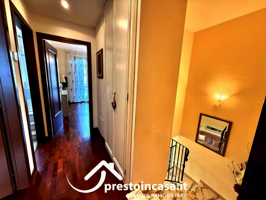 Una elegante scala interna conduce al piano superiore, dedicato alla zona notte, dove troviamo 3 camere da letto, di cui una matrimoniale con accesso al balcone, oltre a un ampio bagno a servizio del reparto notte.