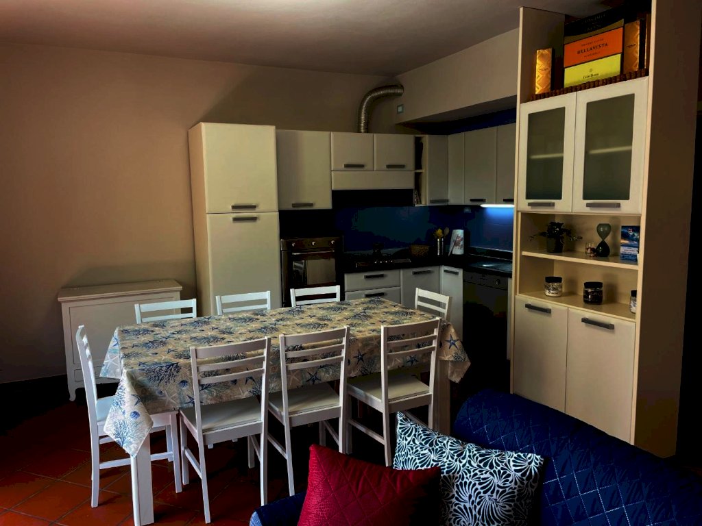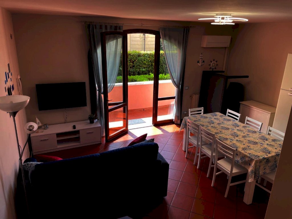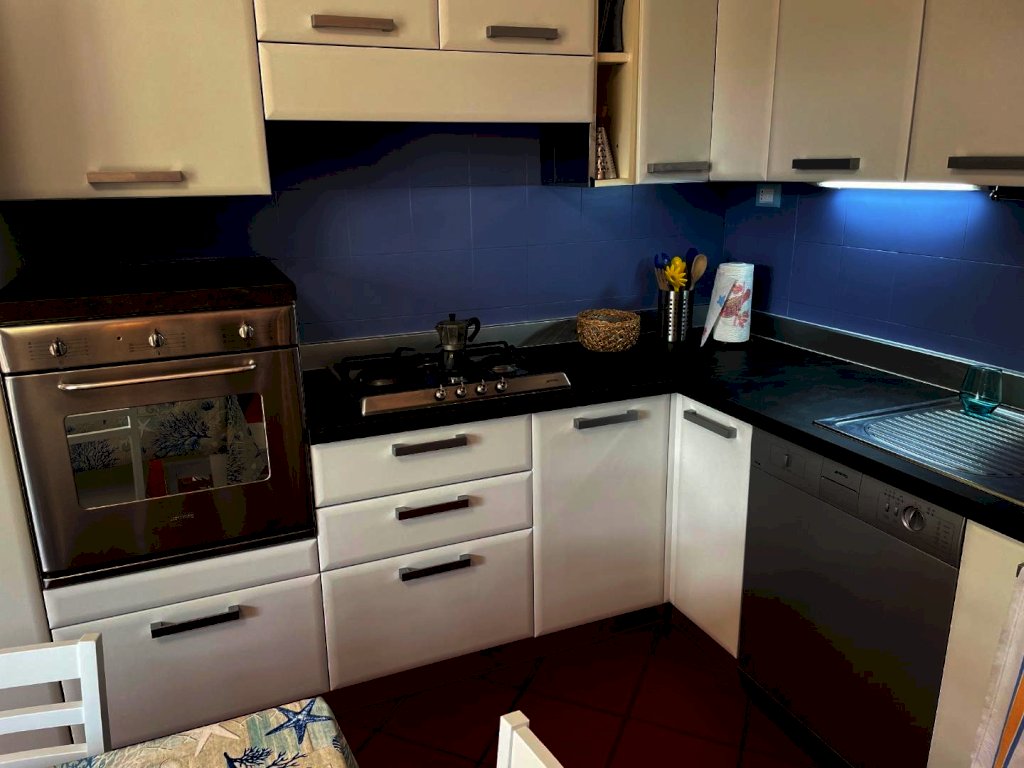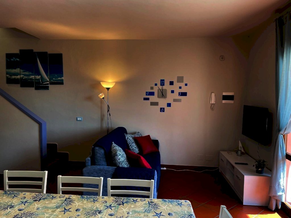 AbitarArt propone in vendita Rif. 50 villetta a schiera fronte mare, disposta su tre livelli e composta al piano rialzato da: Soggiorno con cucina a vista, bagno con doccia, angolo lavanderia e balcone.