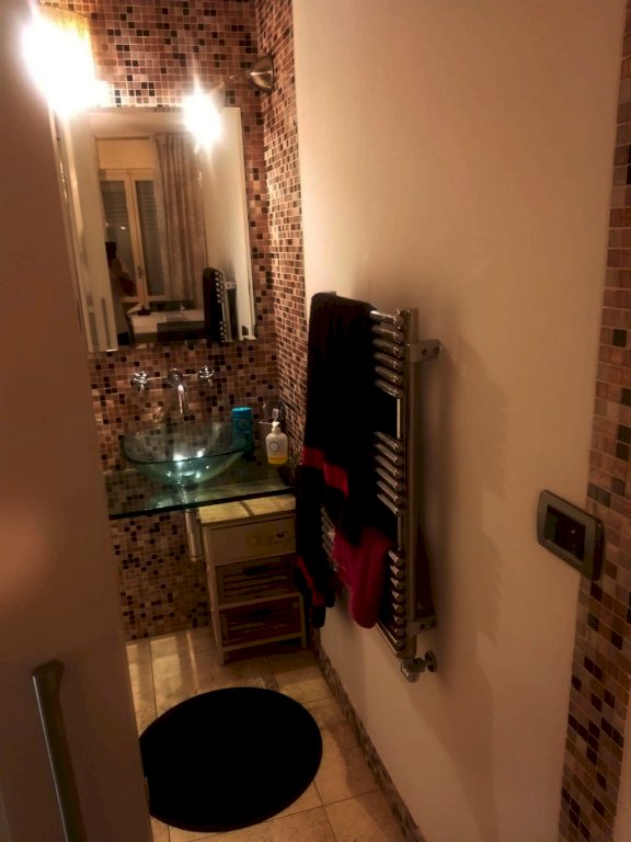 Marina di Massa, Via Treviso, ns. esclusiva interessante Villetta a schiera completamente ristrutturata, curata nei particolari, disposta su due livelli e composta da ingresso da giardino privato, ampio soggiorno, cucina abitabile con piano in marmo Carrara e vasca scavata, bagno con doccia con piacevole mosaico in vetro, ripostiglio, tutto il piano terreno scala compresa e' in marmo travertino, camera matrimoniale due comode singole tutte con balcone, bagno completo di vasca idromassaggio, pavimento del piano notte in parquet ;