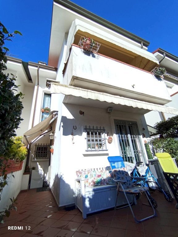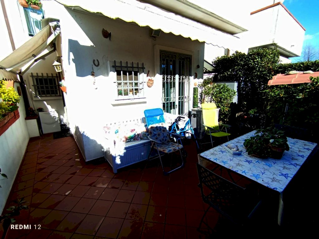 Marina di Massa, località Ronchi a circa 1200 metri dal mare, proponiamo una villetta a schiera centrale abitabile fin da subito con resede sul fronte dell'immobile e posto auto esclusivo. La villetta è disposta su due livelli abitativi oltre a sottotetto; a piano terra si accede all'immobile dal soggiorno, sia dal portoncino che da porta finestra collegata direttamente con la resede tramite portico e completa il piano il cucinotto. Al piano primo ci sono due camere da letto ed il bagno con doccia; proseguendo le scale si arriva al secondo piano mansardato composto da un'unica stanza e due piccoli vani.