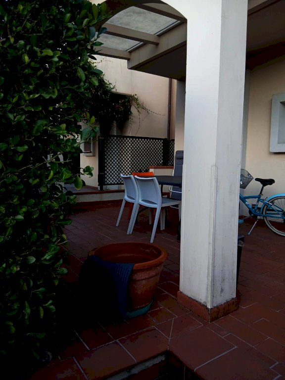 Ronchi, a poco piu' di 1 km. dal mare, villetta a schiera disposta su piu' livelli situata in strada a fondo chiuso, recentemente parzialmente ristrutturata, composta da: angolo cottura con soggiorno ed accesso a pergolato all'esterno ideale per pranzi e cene all'aperto al piano terra; 2 camere matrimoniali (di cui una con balcone) e bagno al piano primo; camera singola con aria condizionata, bagno (senza doccia), piccolo ripostiglio al piano mansardato. Inoltre camera matrimoniale con grande bagno, ripostiglio al piano interrato (accessibile sia dall'interno che dall'esterno). Posto auto privato in area condominiale. Viene venduto parzialmente arredato.